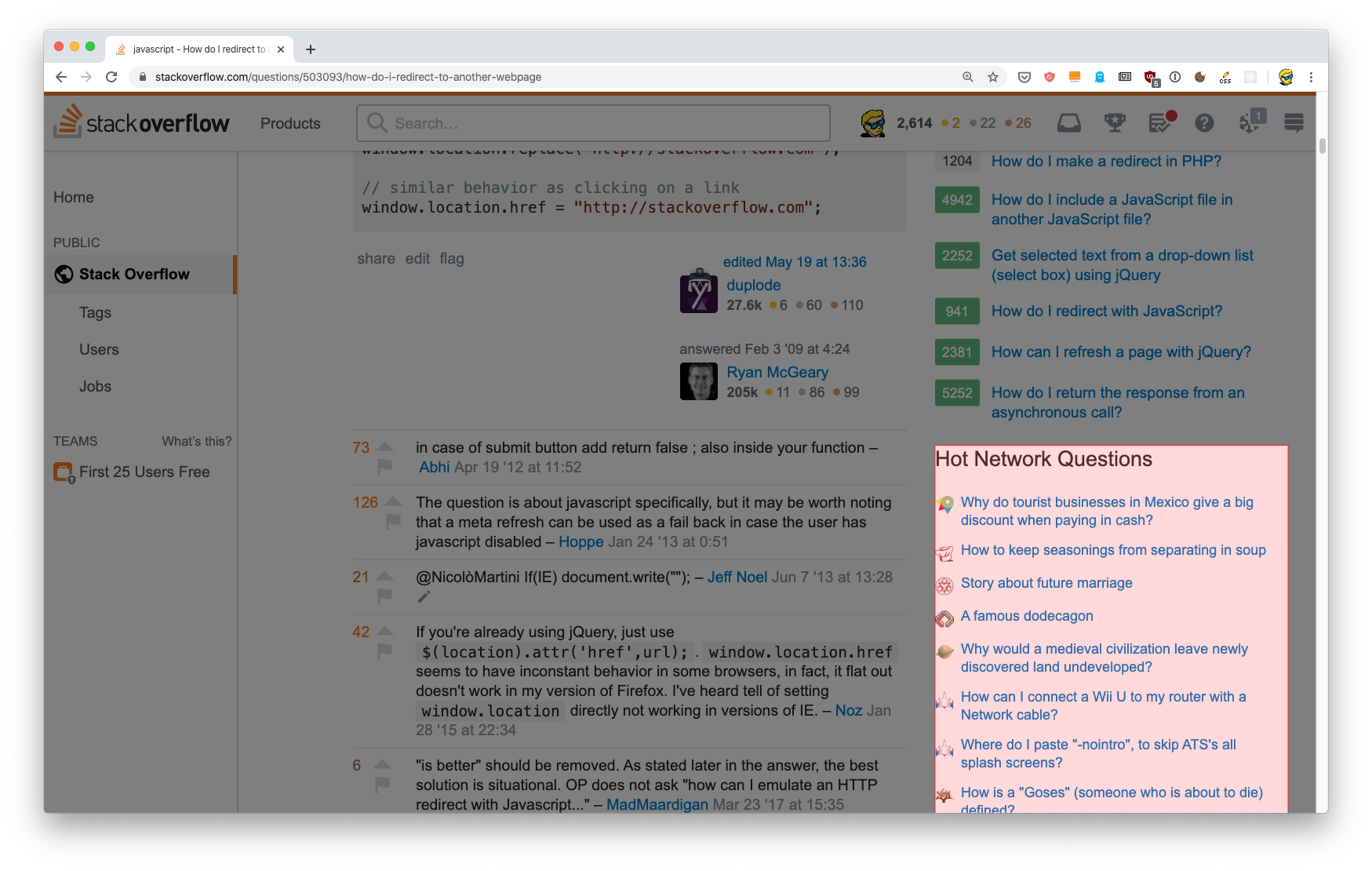 I pick this random StackOverflow page, and while I’m reading about some JS, I am interrupted by interesting questions like: