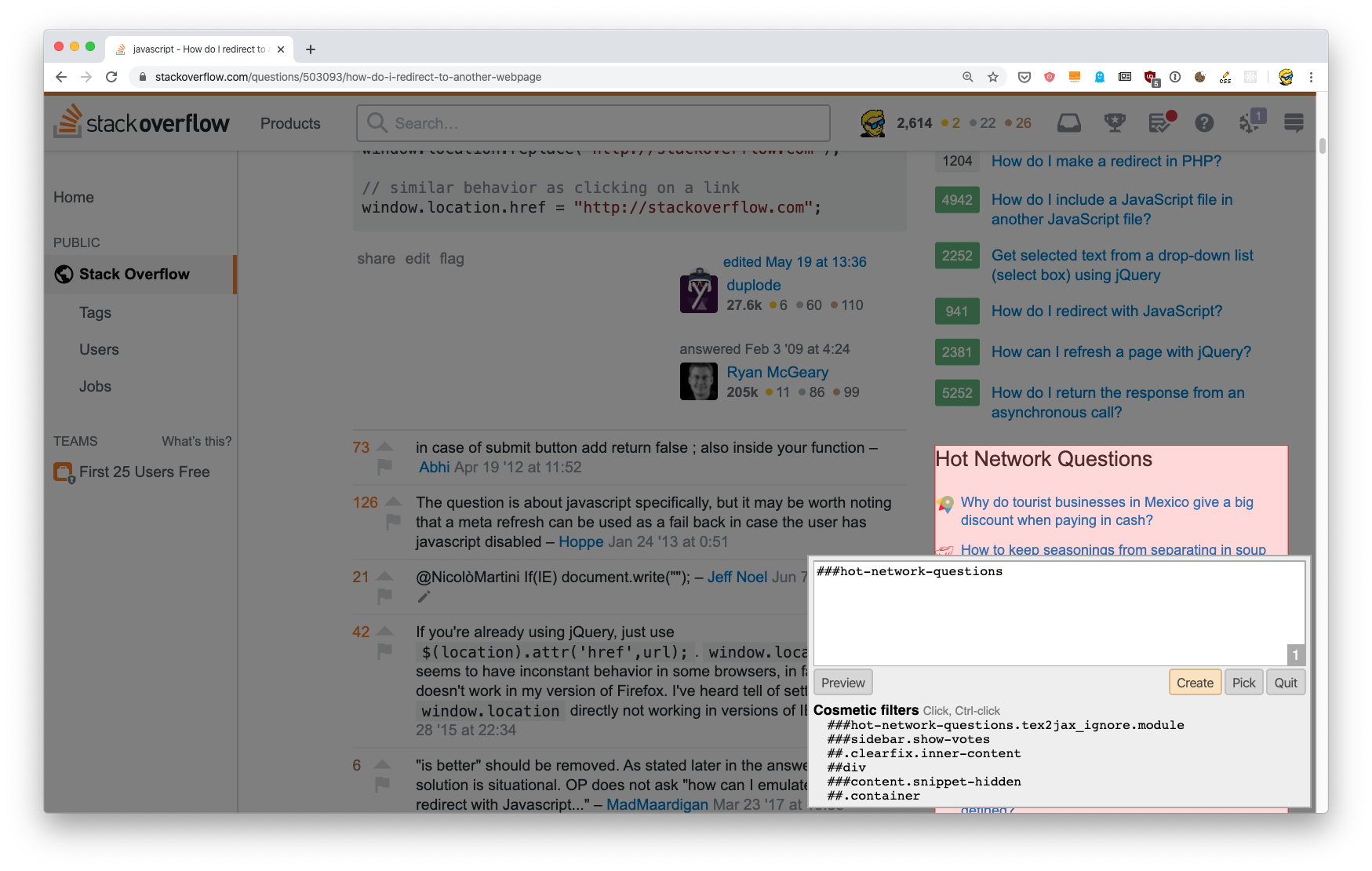 But sometimes I can’t really block a whole site. For example, StackOverflow can’t be blocked. Yet it really annoys me with some of its UI like the network questions.