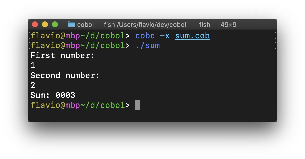 Anyway, you can read about the history of COBOL on Wikipedia. The goal here is to make a quick introduction to the language, so the next time you hear COBOL, you know what it looks like.