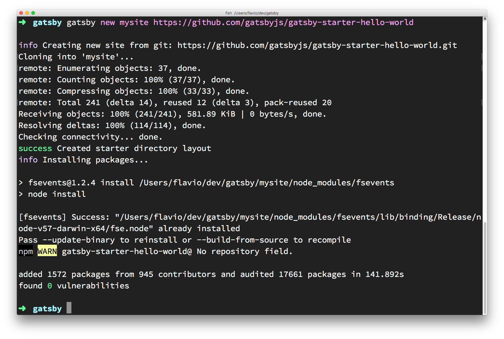 gatsby new mysite https://github.com/gatsbyjs/gatsby-starter-hello-world
