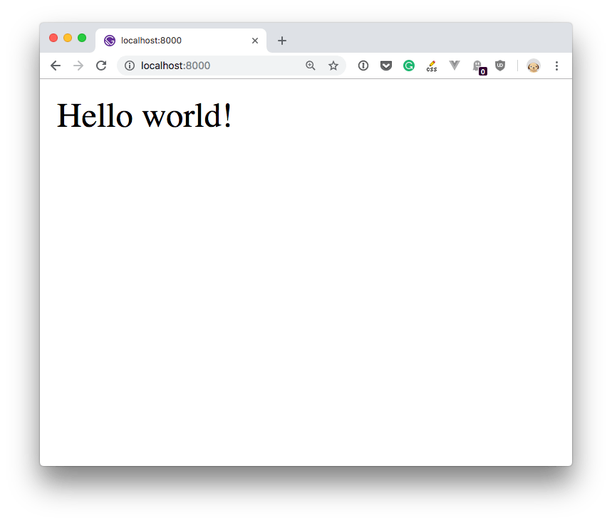 Now, making a simple change to the default page is easy, just open src/pages/index.js and change “Hello world!” to something else, and save. The browser should instantly hot reload the component (which means the page does not actually refresh, but the content changes - a trick made possible by the underlying technology).