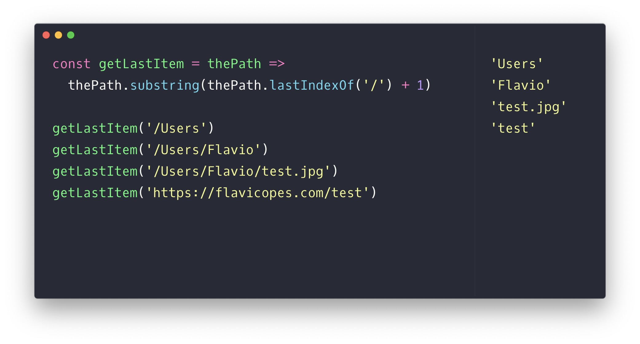 const getLastItem = thePath => thePath.substring(thePath.lastIndexOf('/') + 1)
