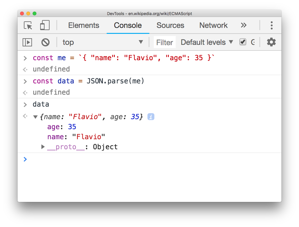 From this little snippet you can see that keys are wrapped in double quotes, a colon separates the key and the value, and the value can be of different types.