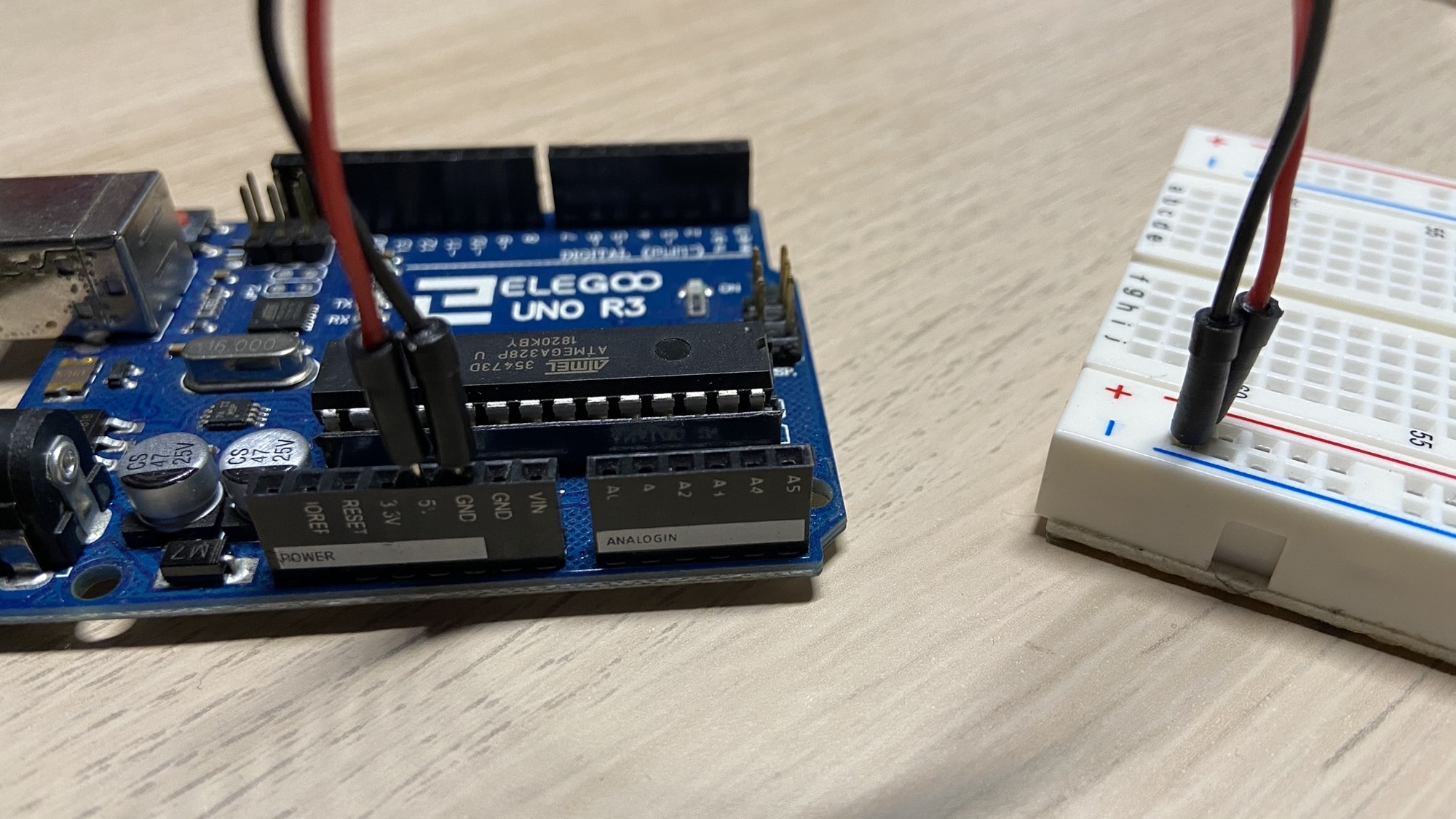 Connect the power pins 5V and GND to the + and - breadboard lines: