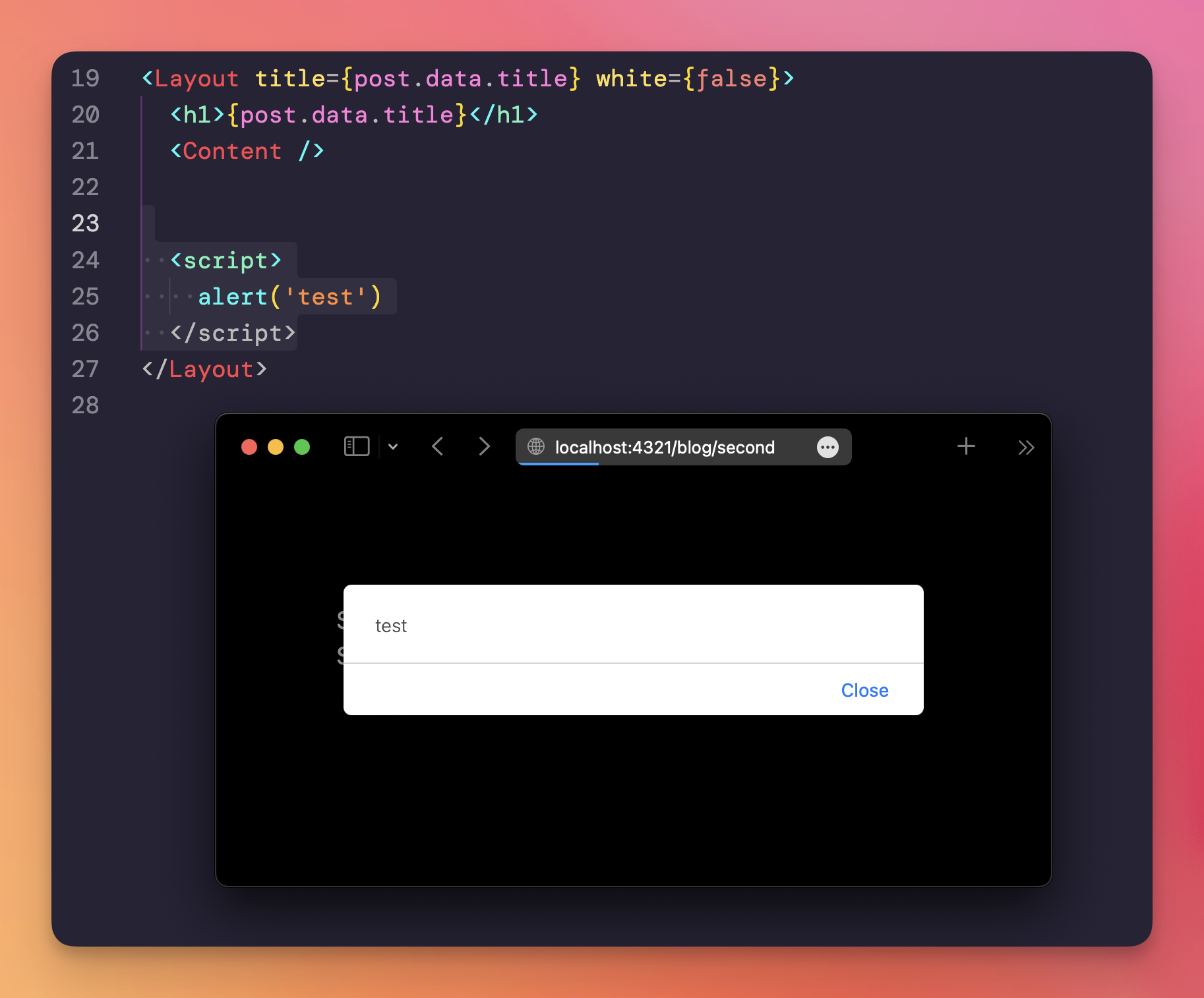 It’s important to note that Astro processes this code and, for example, if you include it in a component that’s reused multiple times, the code is only executed once.