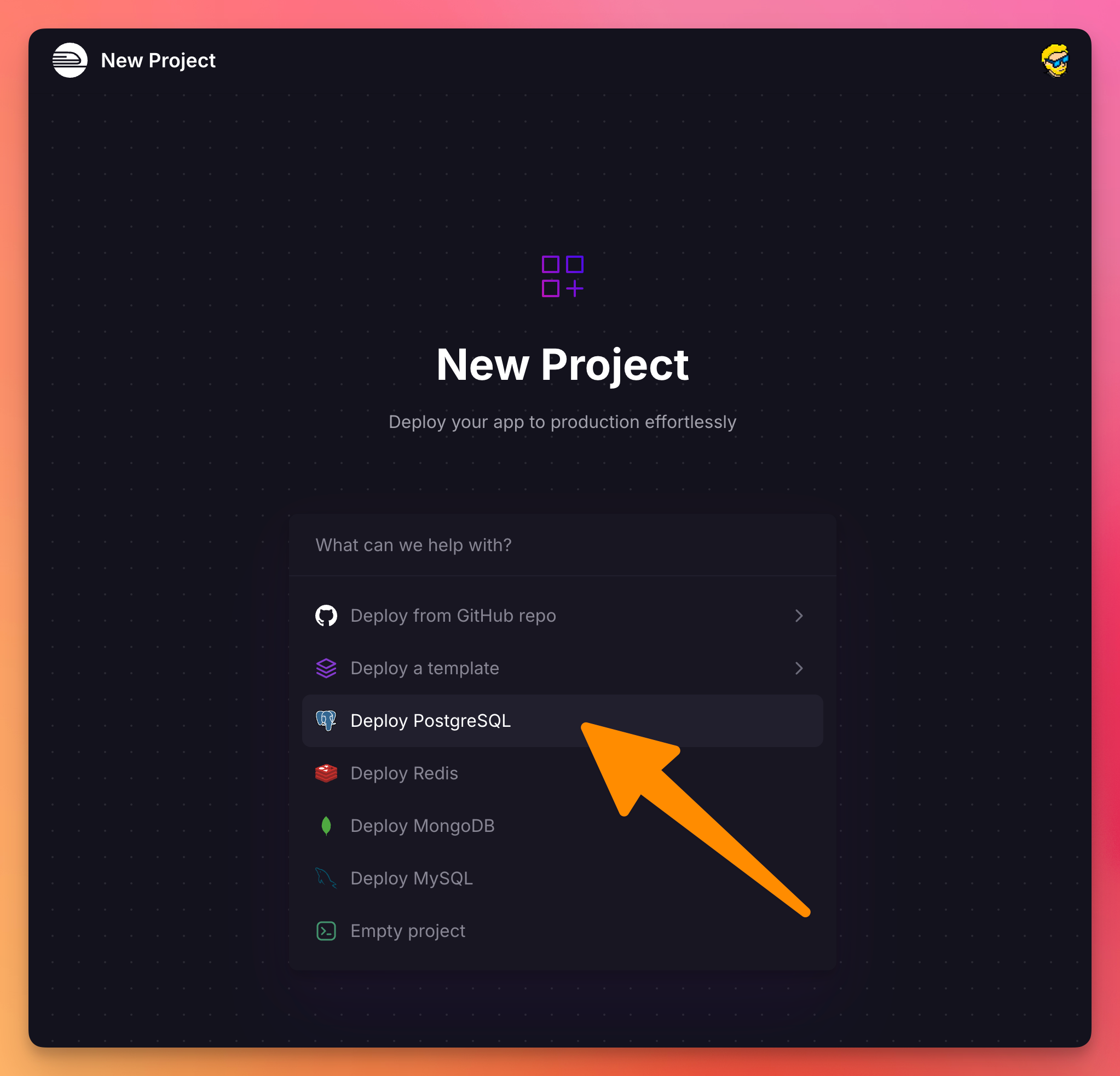 Create a new project on Railway, and deploy PostgreSQL first: