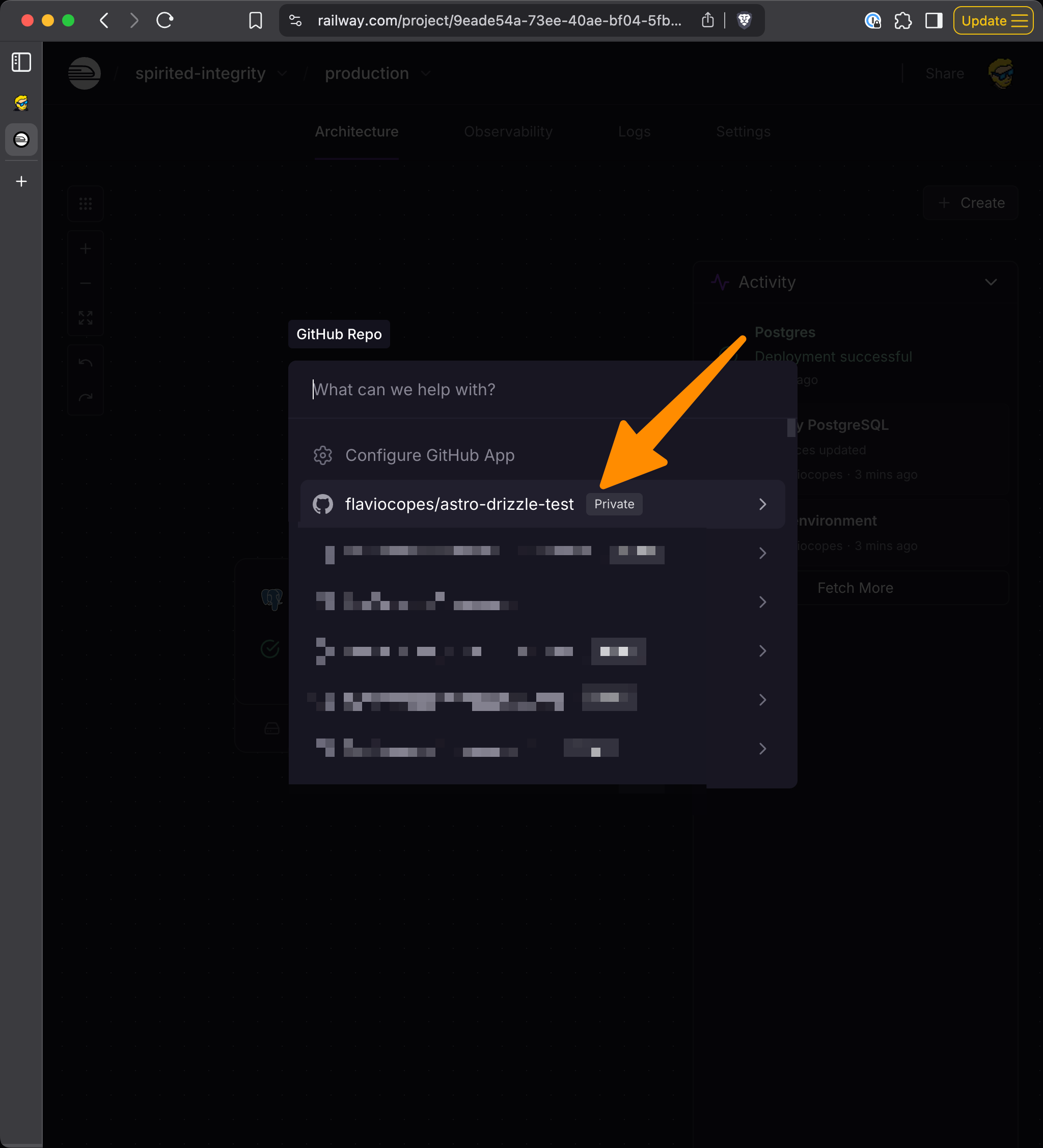 Select your repo (if it’s the first time using this, you’ll first have to connect GitHub):