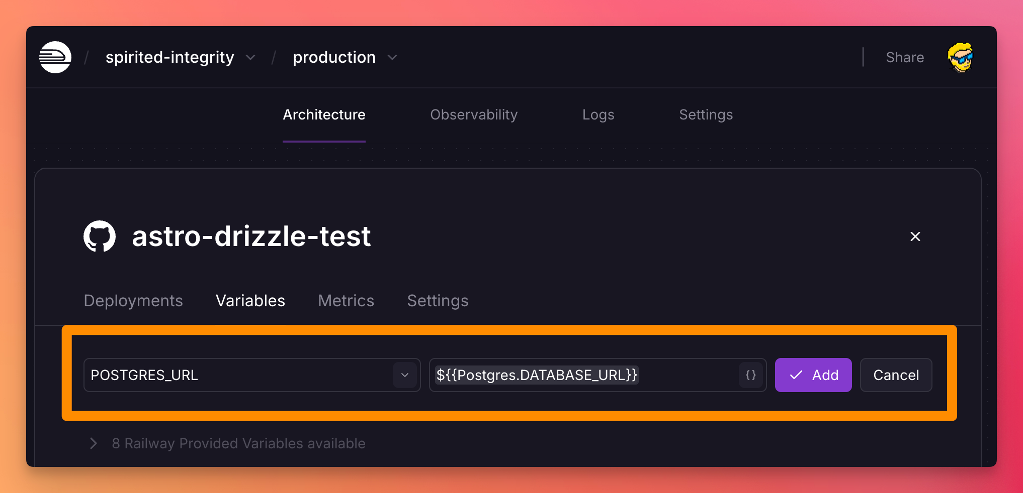I’m writing this to show how to deploy an app built on Astro and SSR, which uses a PostgreSQL database for managing data, on Railway (referral link).