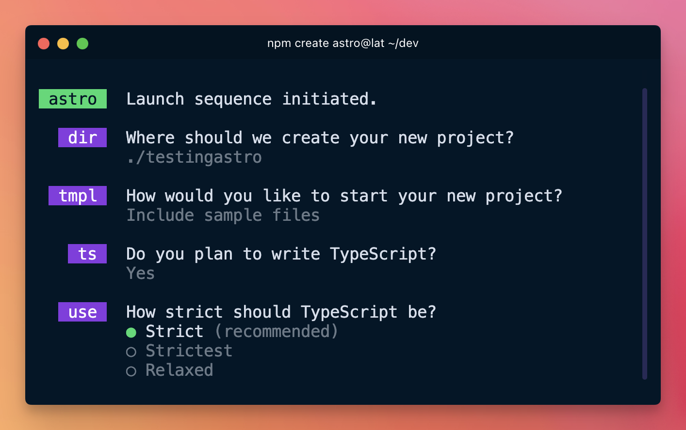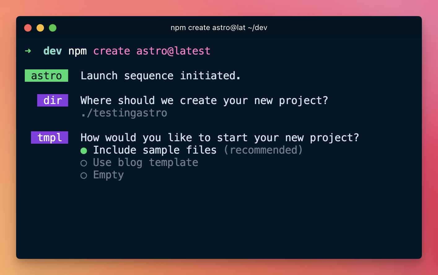 npm create astro@latest
