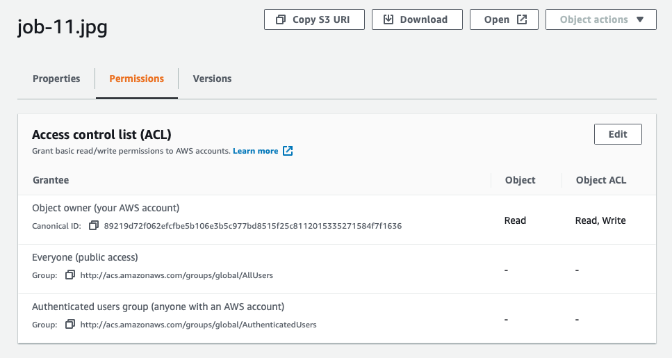 After I had the S3 bucket ready, and the image was uploaded and then the URL was stored in my database, I realized the image was not accessible publicly in read mode.