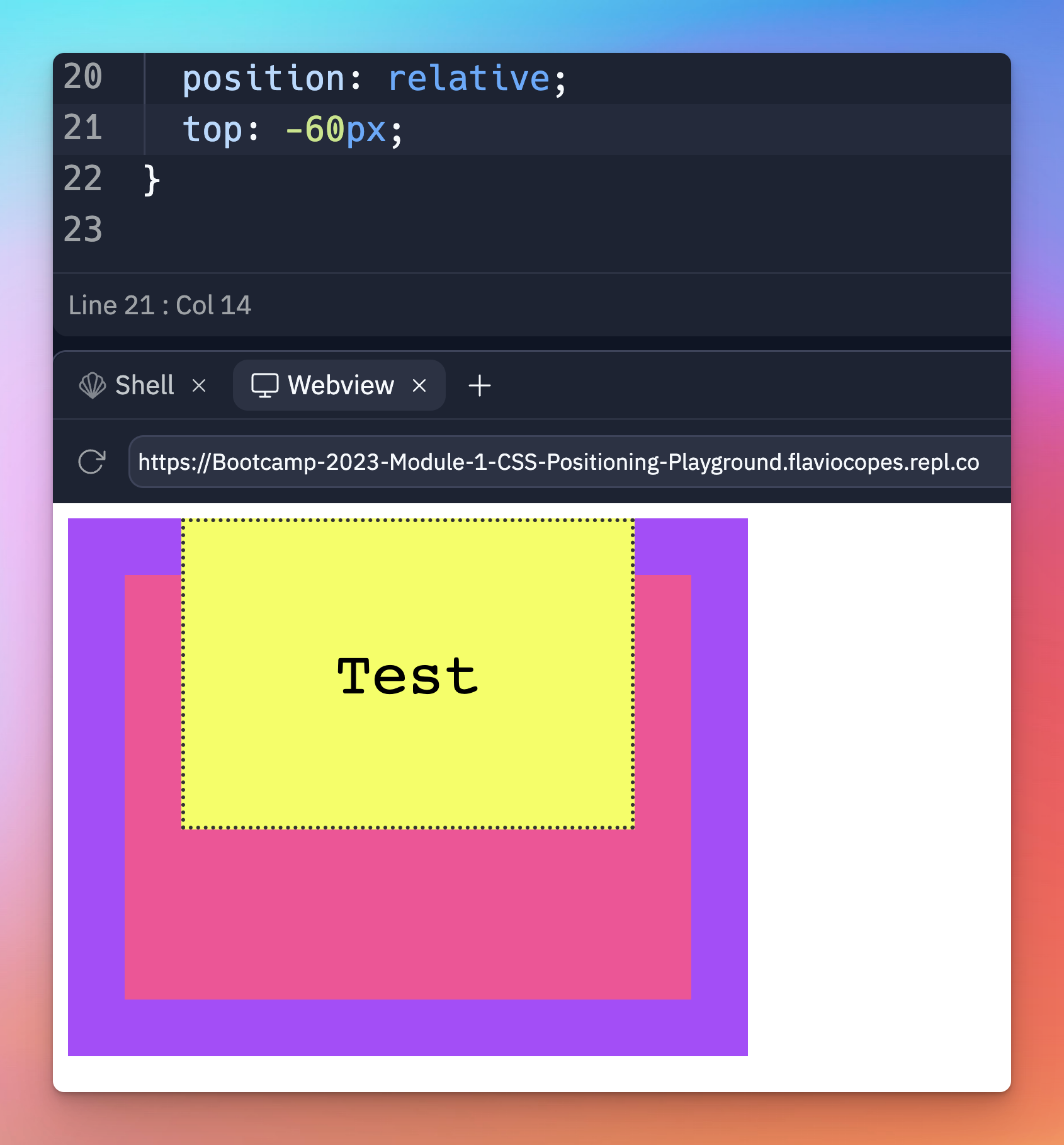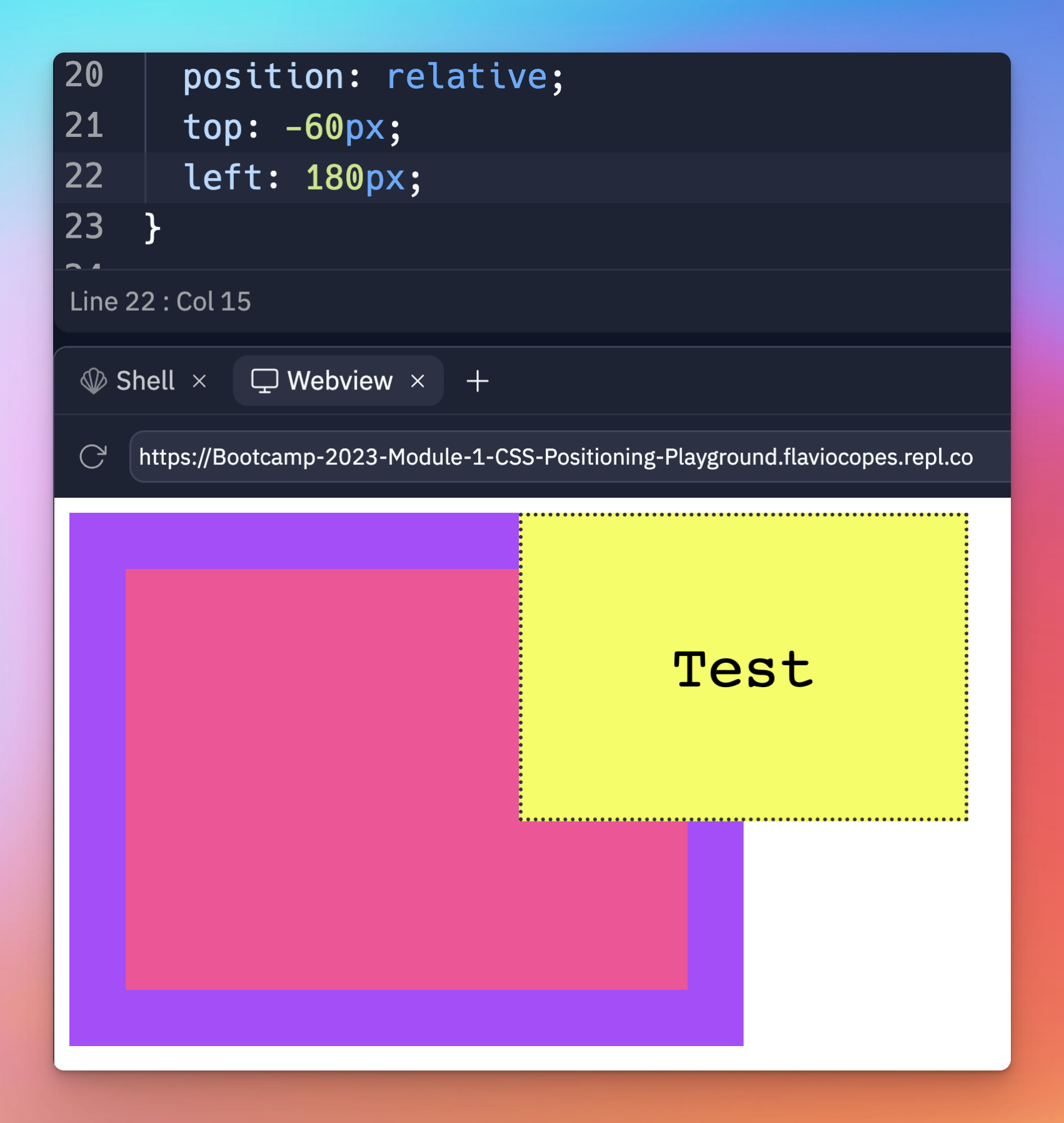 But now the element is now able to move using the top, right, bottom, left properties, and now you can alter the position of it relatively to the element containing it.