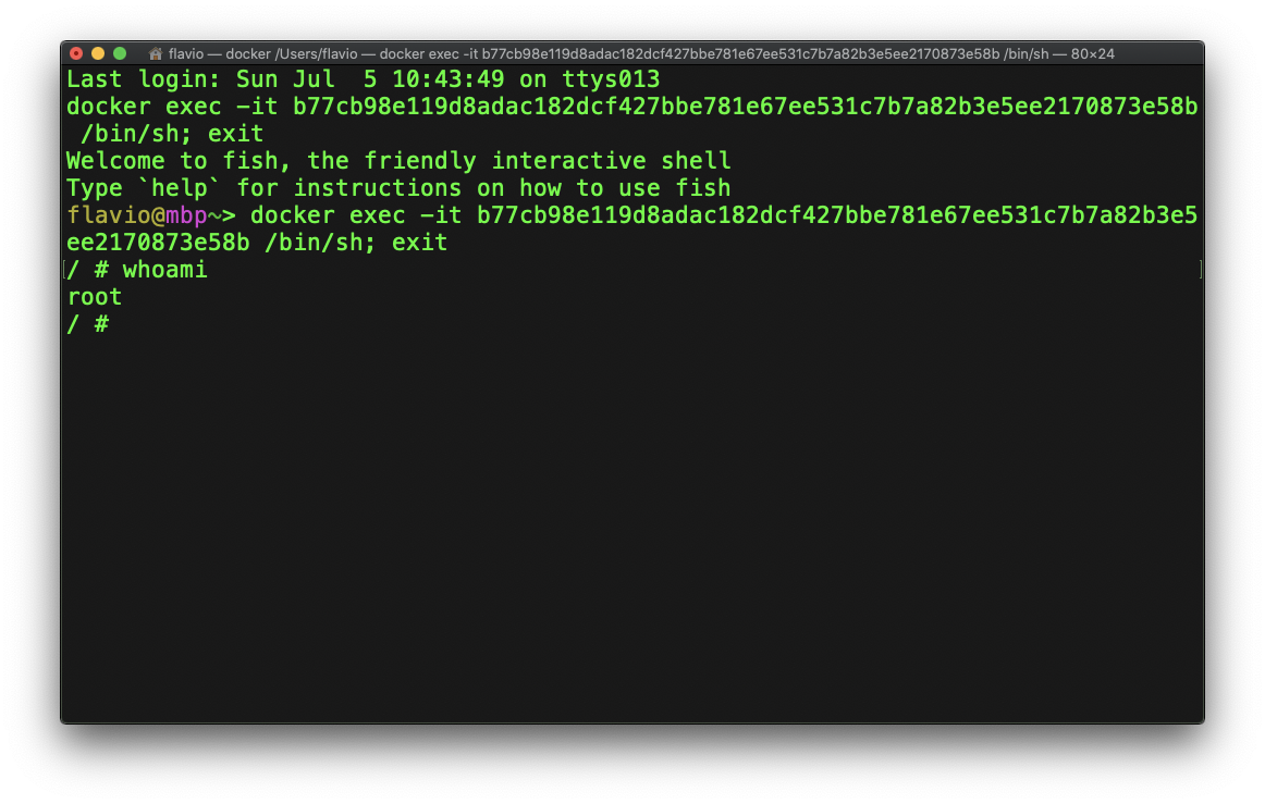 Try pressing the CLI button. A new terminal window will open and you will automatically be connected to the Docker Container, as the root user:
