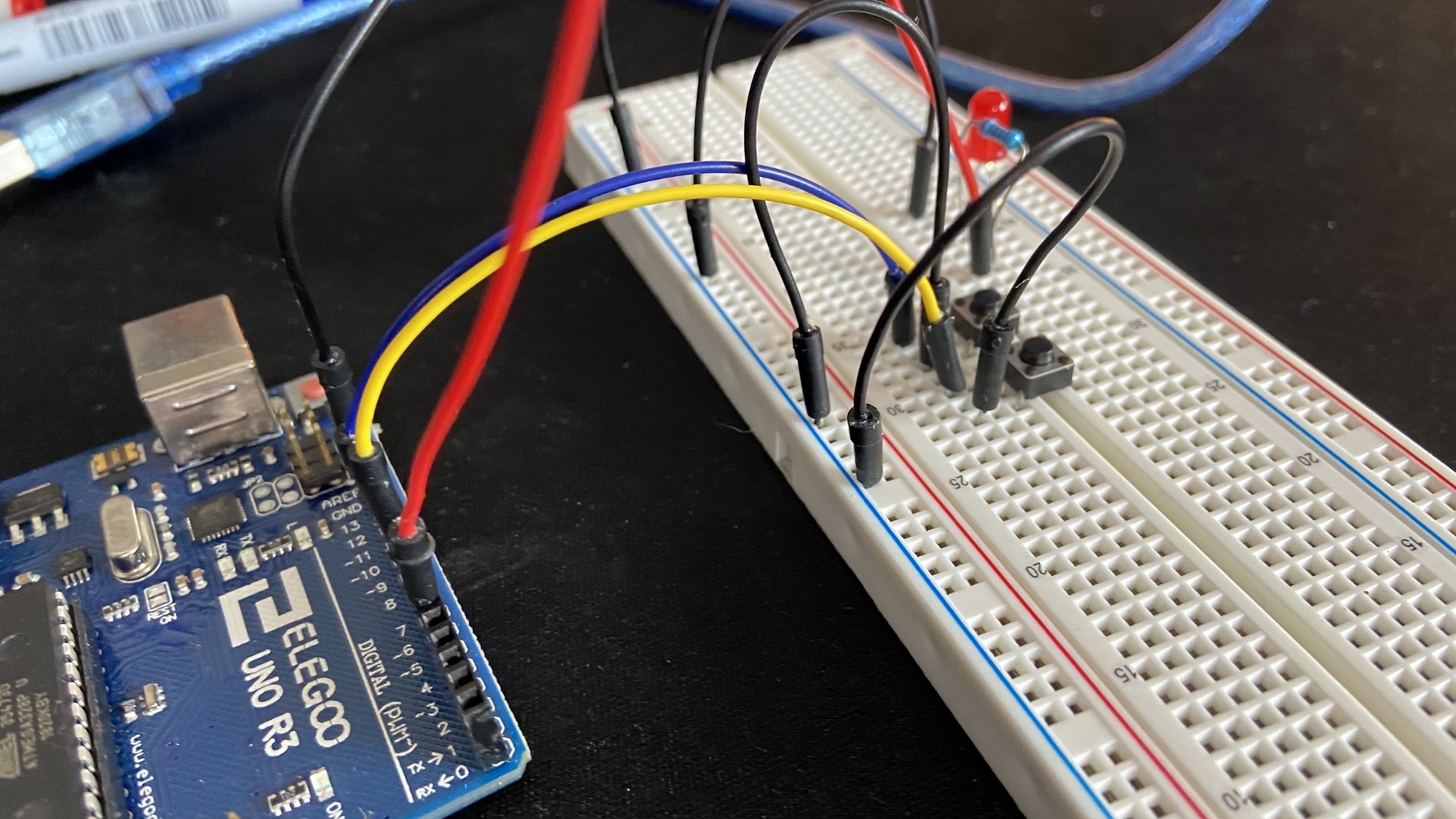 In this image you can see a simple circuit with a battery, a resistor and a LED.