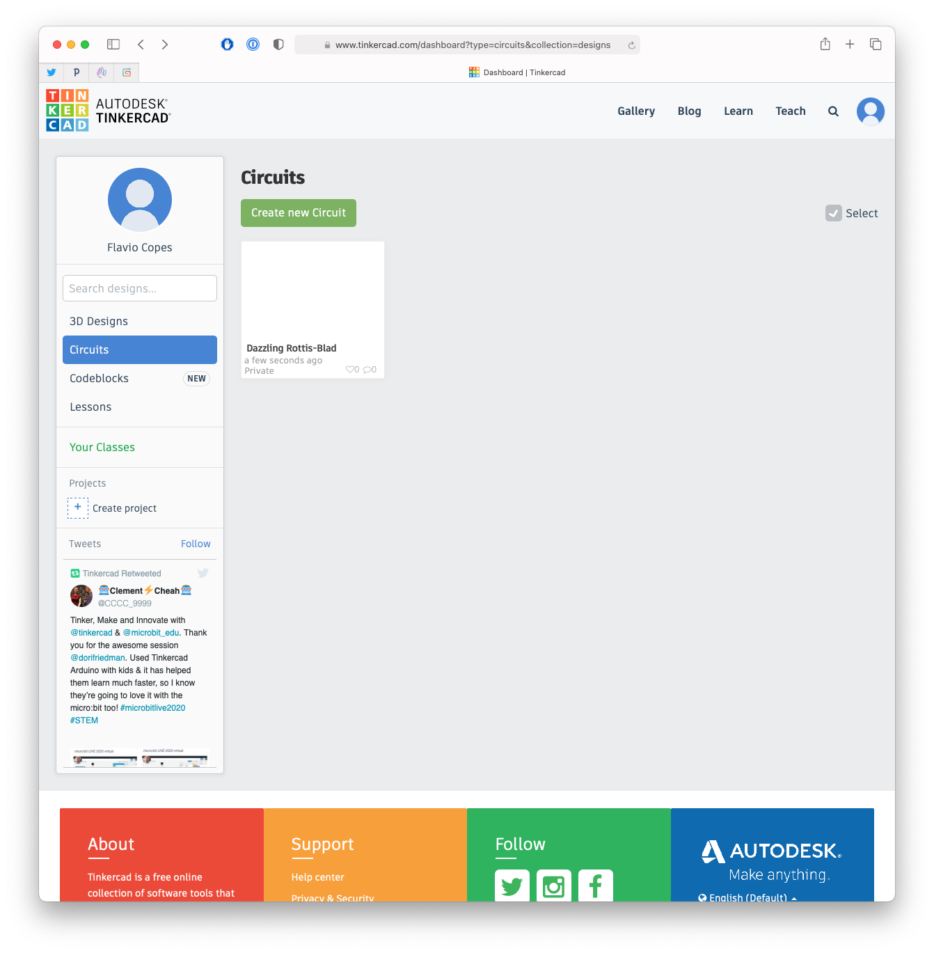 Tinkercad, from Autodesk, the creators of the famous AutoCAD, lets you create and simulate electronic circuits, but not just that - you can also create designs for 3D printing. It’s a very cool web application.