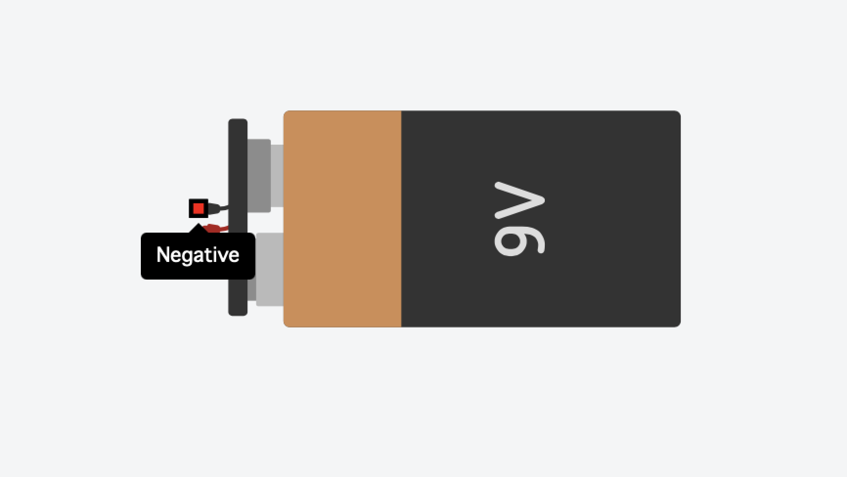 Now hovering each item will show you the connections you can create from them, or to them. For example the battery has a positive pole and a negative pole: