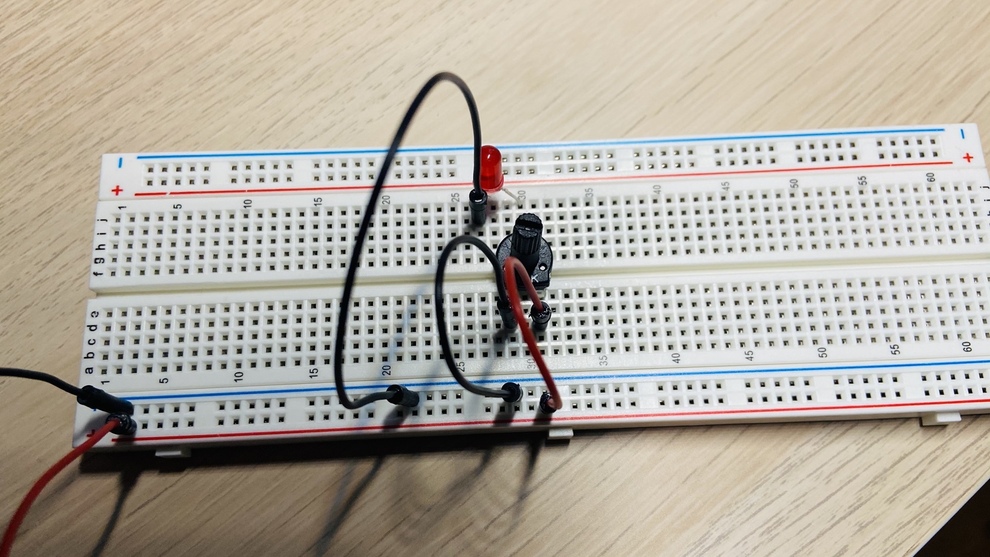 Be careful not to turn the potentiometer all the way to the right, or the LED could be damaged as the current will be too much to handle.