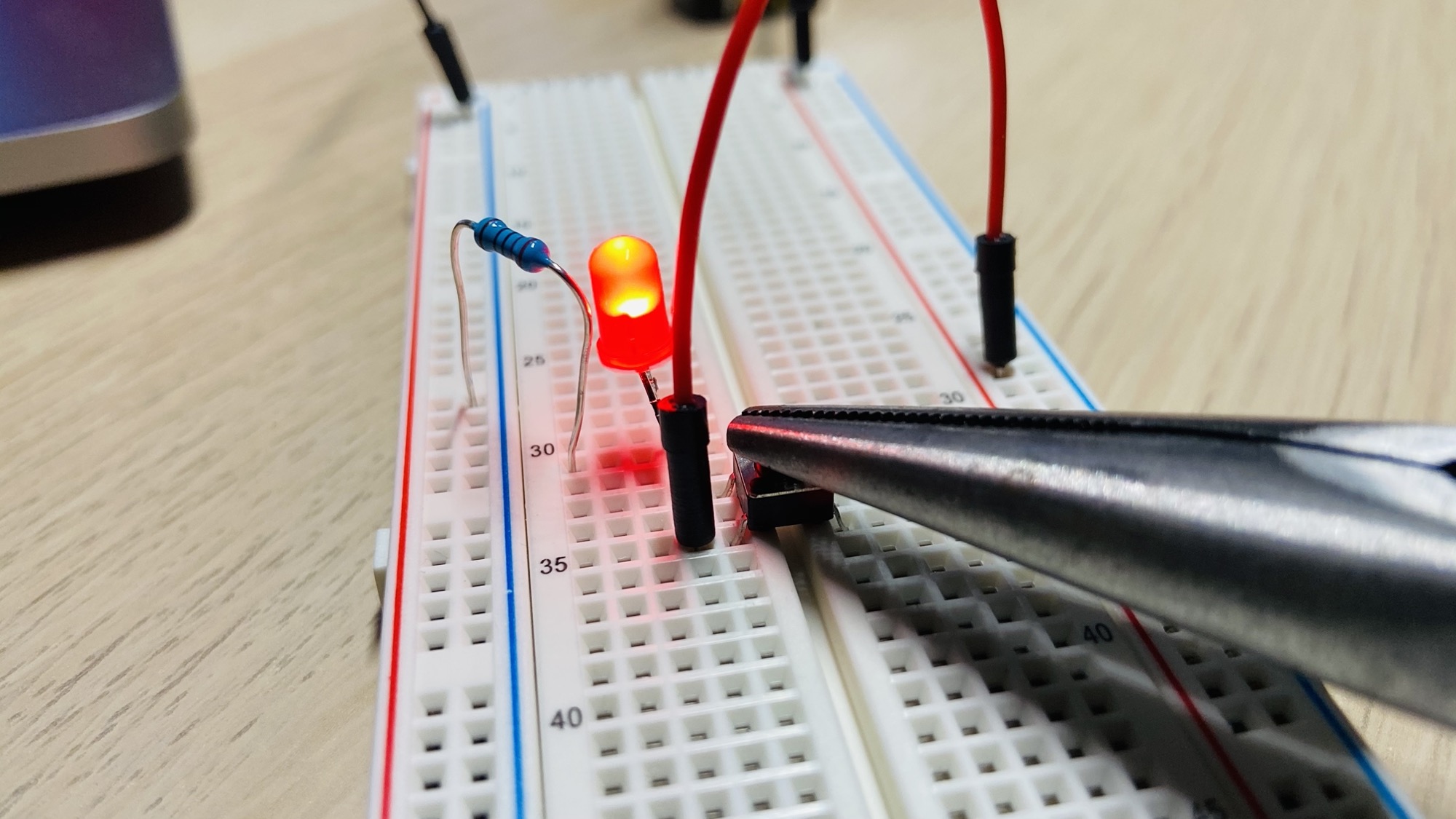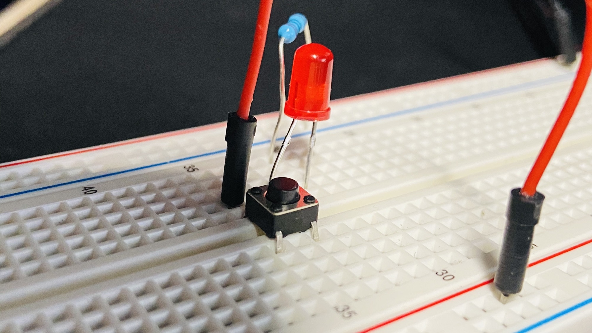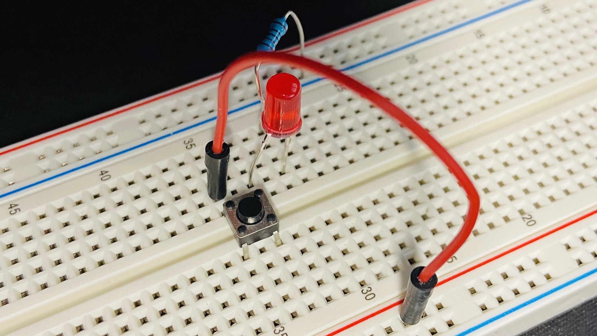 Then you can create a connection between 2 rows in the same part of the breadboard, like this: