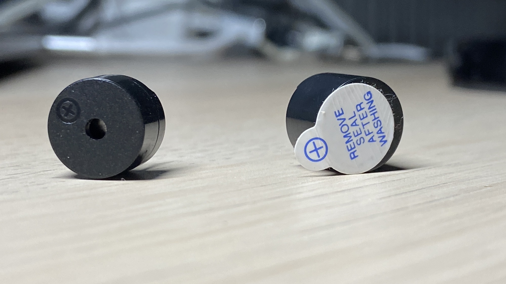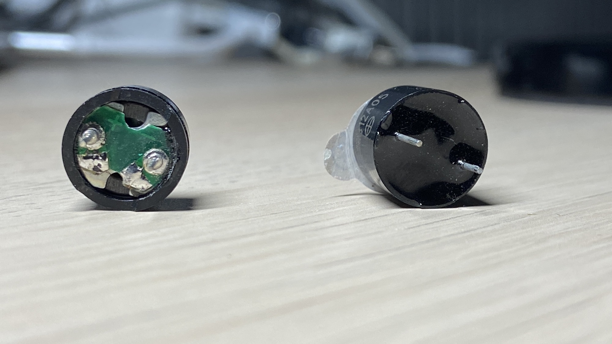 On the left you can see a passive buzzer, and on the right an active buzzer: