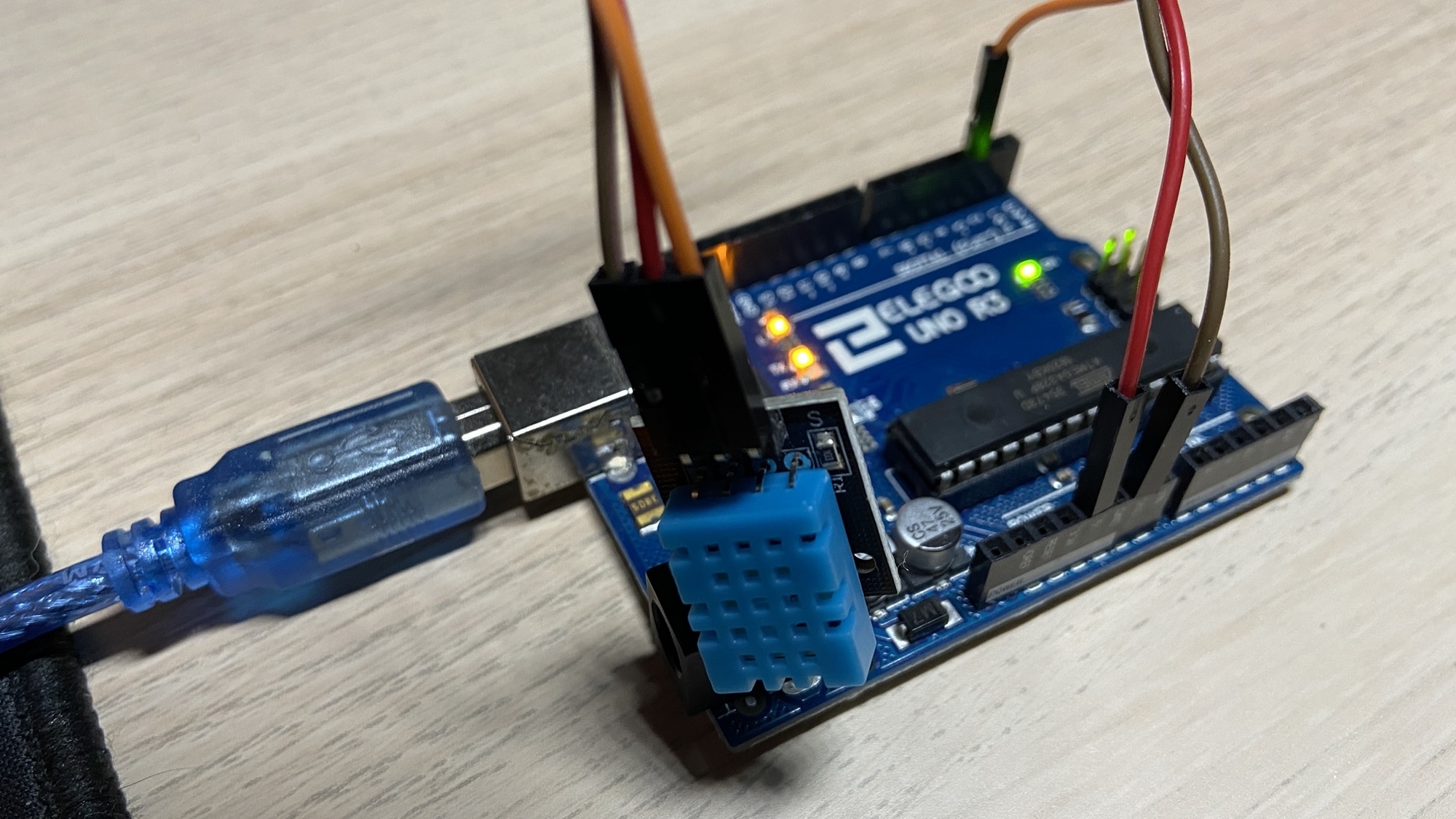 Note that the sensor has 4 output pins, although the breakout board I got only has 3 (the reason being the pin 3 of DHT11 is not connected to anything - don’t ask me why).