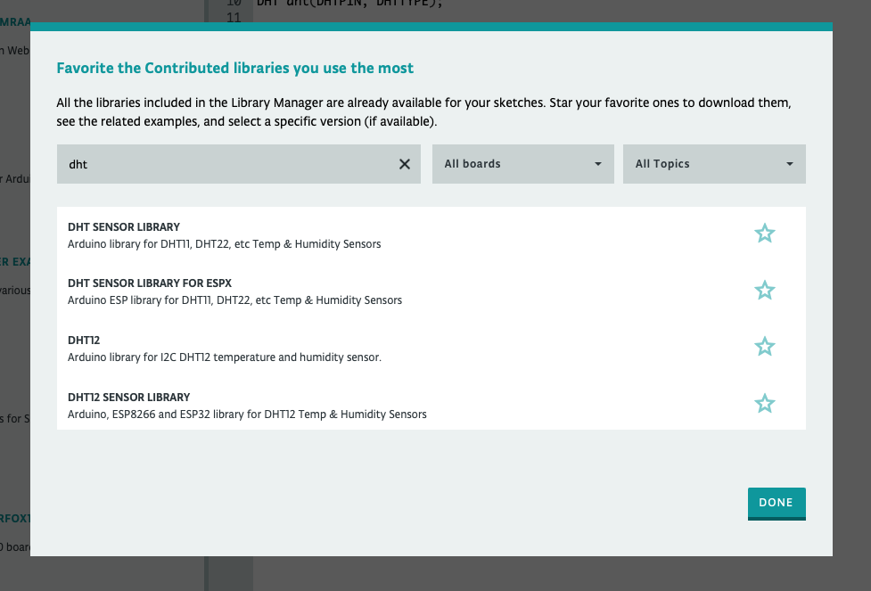 In the Arduino program we use the DHT Sensor Library maintained by Adafruit (here’s the link to the repository) that makes it very simple for us to read the temperature: