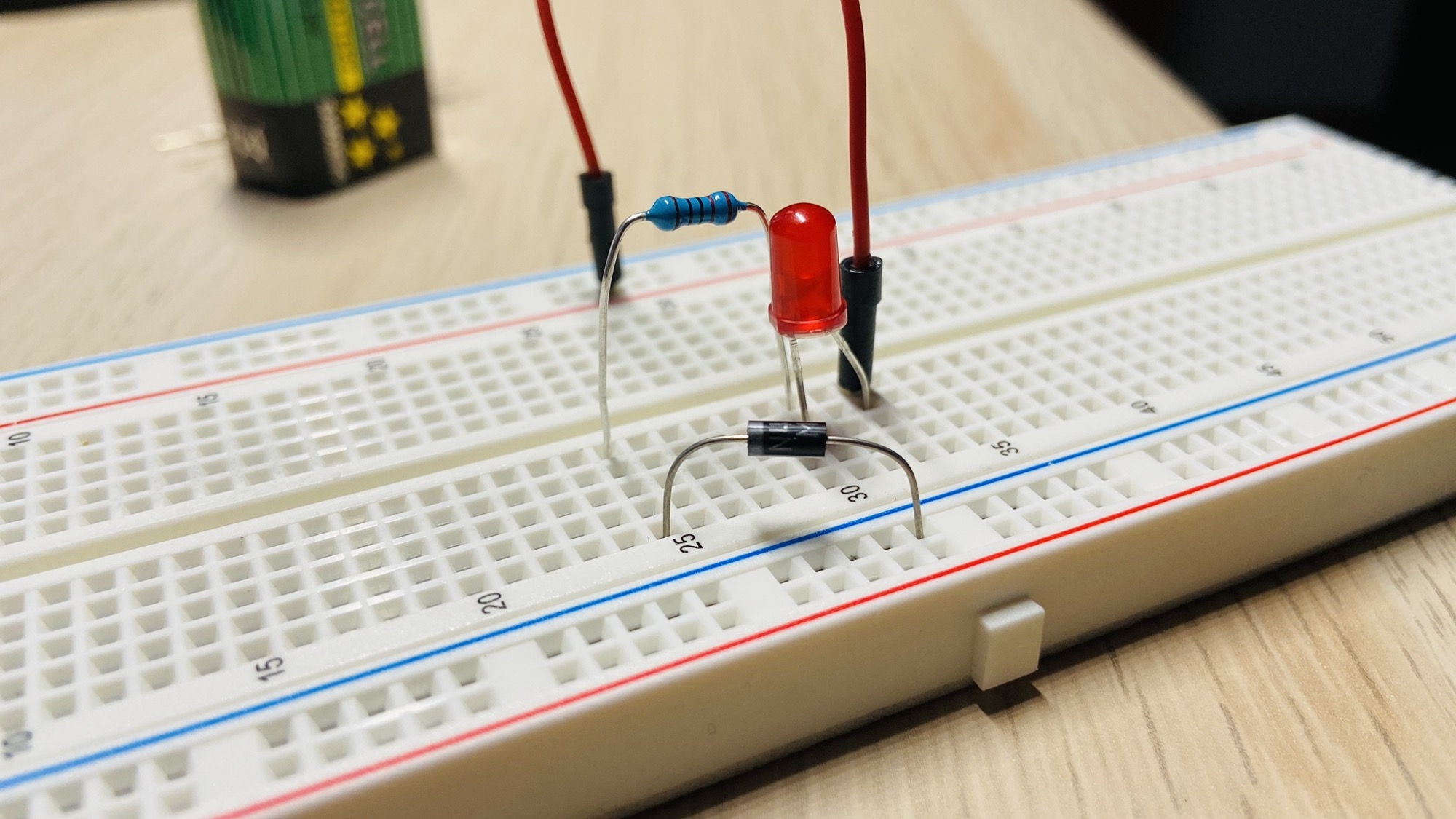 If you add the diode in the correct direction to a simple LED light circuit, the LED will turn on because the circuit is correctly closed: