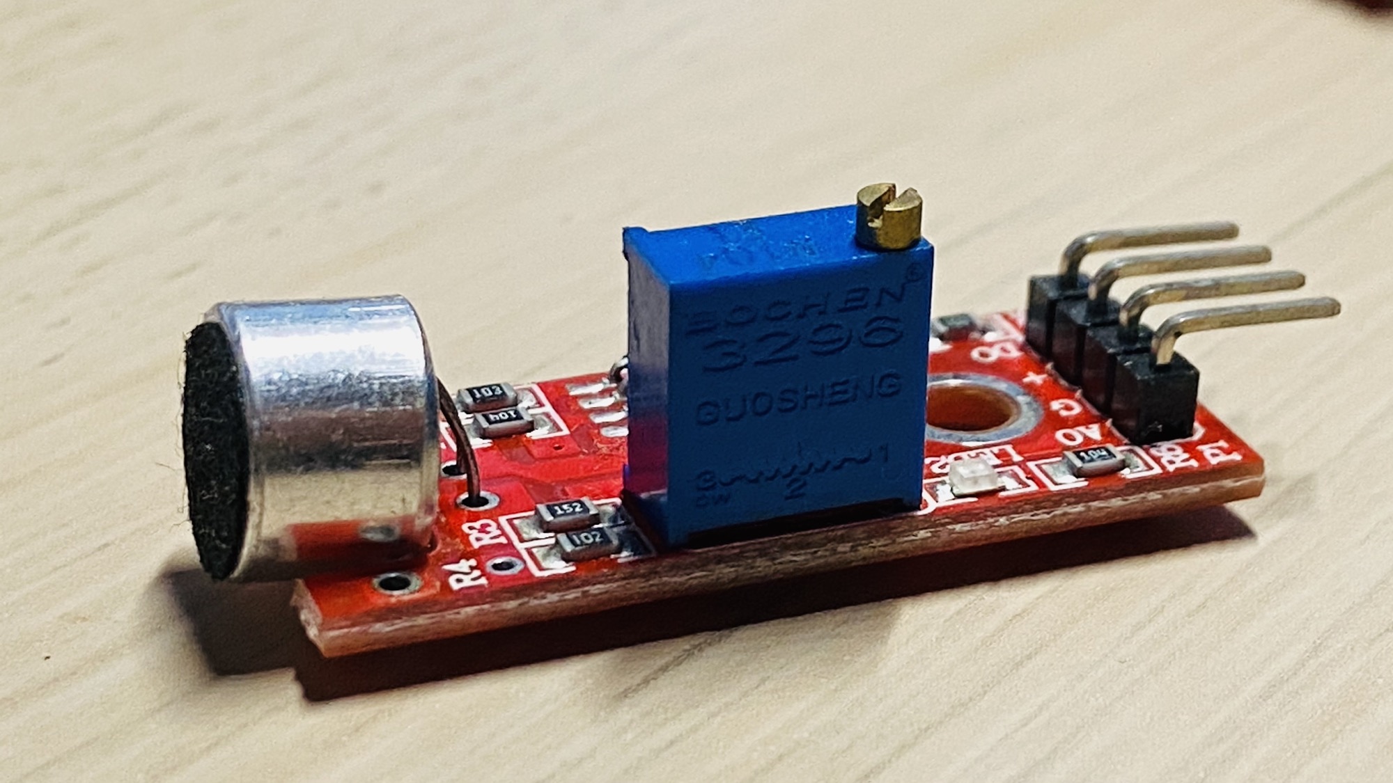 Potentiometer are handy for many reasons, on their own, but they are also used in integrated circuits to help us regulate the output, like in this case with a sound sensor where the potentiometer is the blue box we can regulate with a screwdriver: