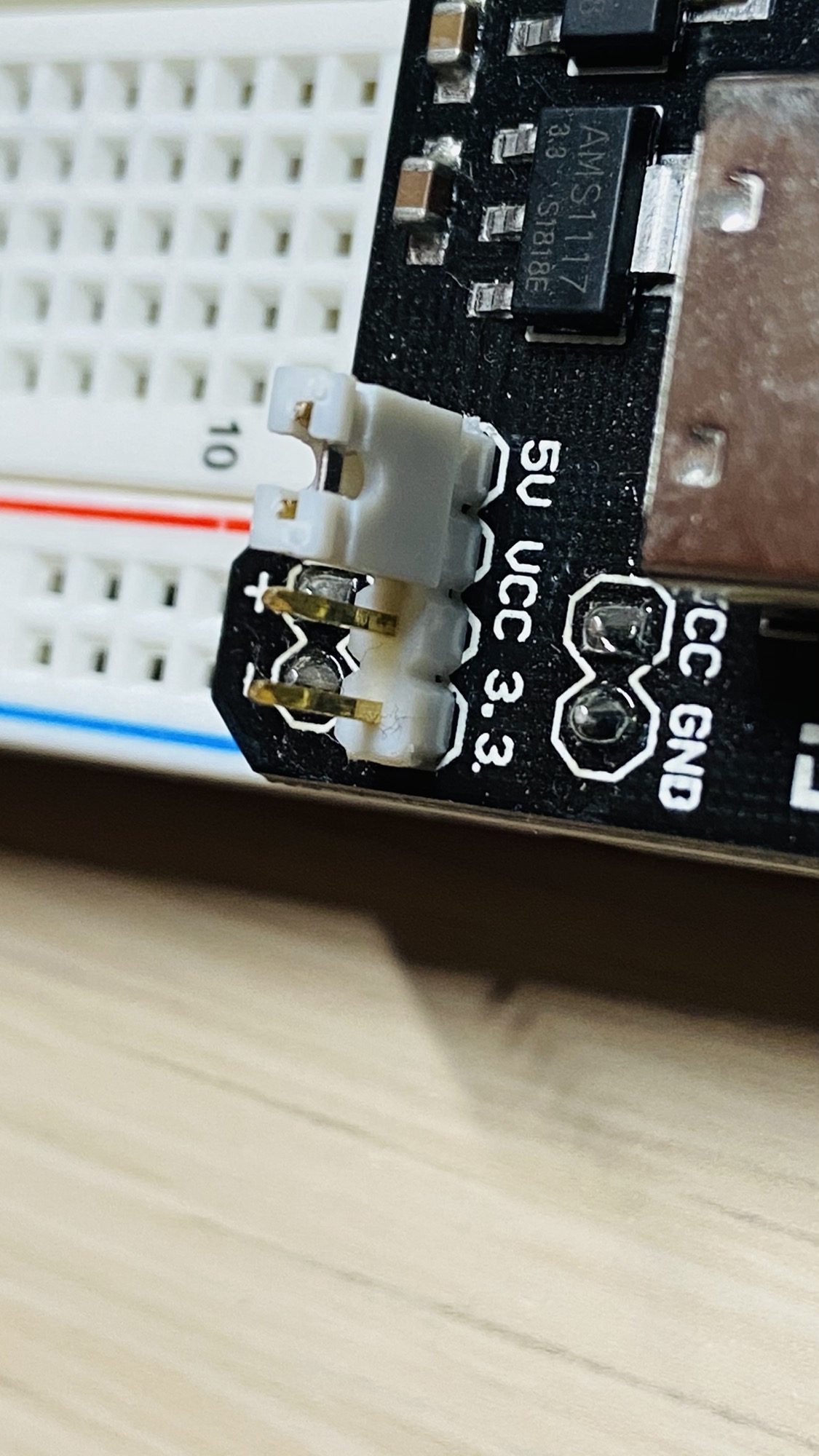 Then on each side you can decide which tension you want to apply to the power lines in the breadboard, independently: 5V like in this case: