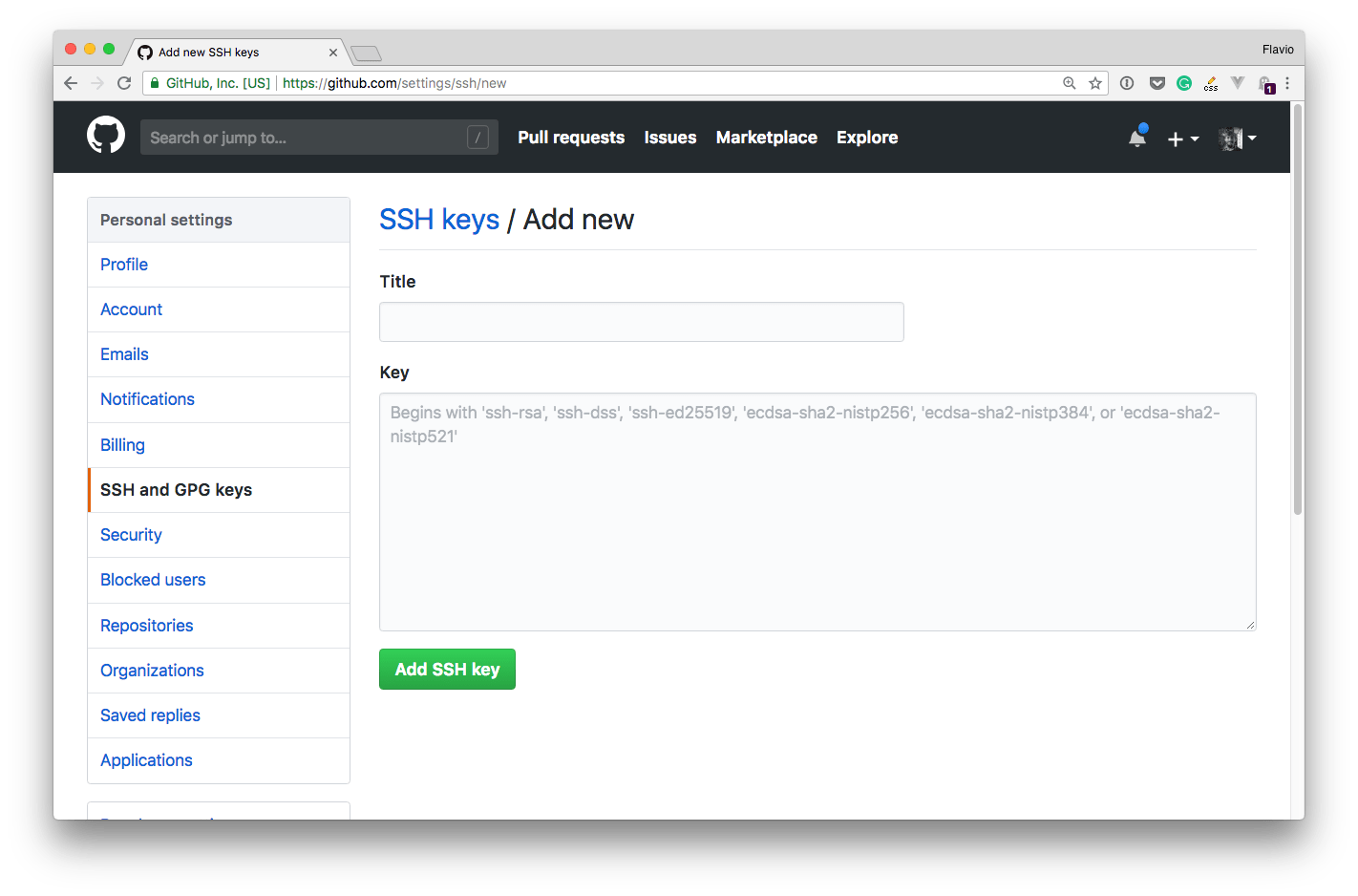 Add the key to GitHub