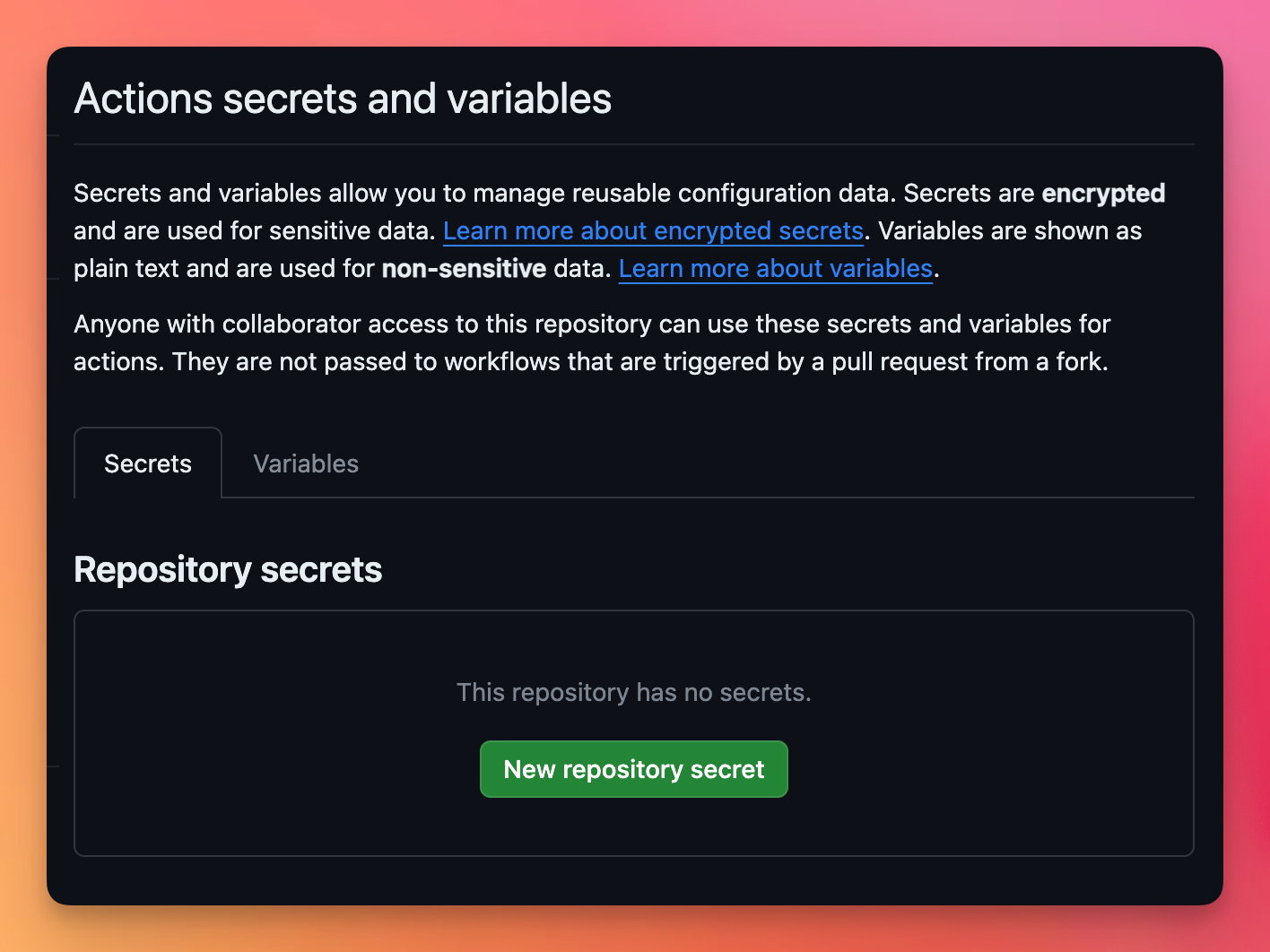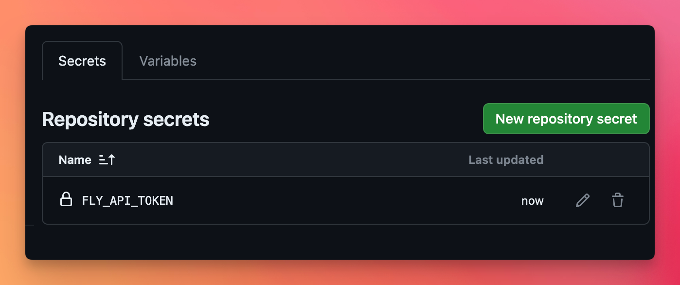 Call the secret FLY_API_TOKEN and enter the value you got from fly tokens...: