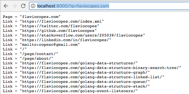 You can test calling http://192.168.99.100:8000/?q=flaviocopes.com, which will print the same output we had when we run the app locally: