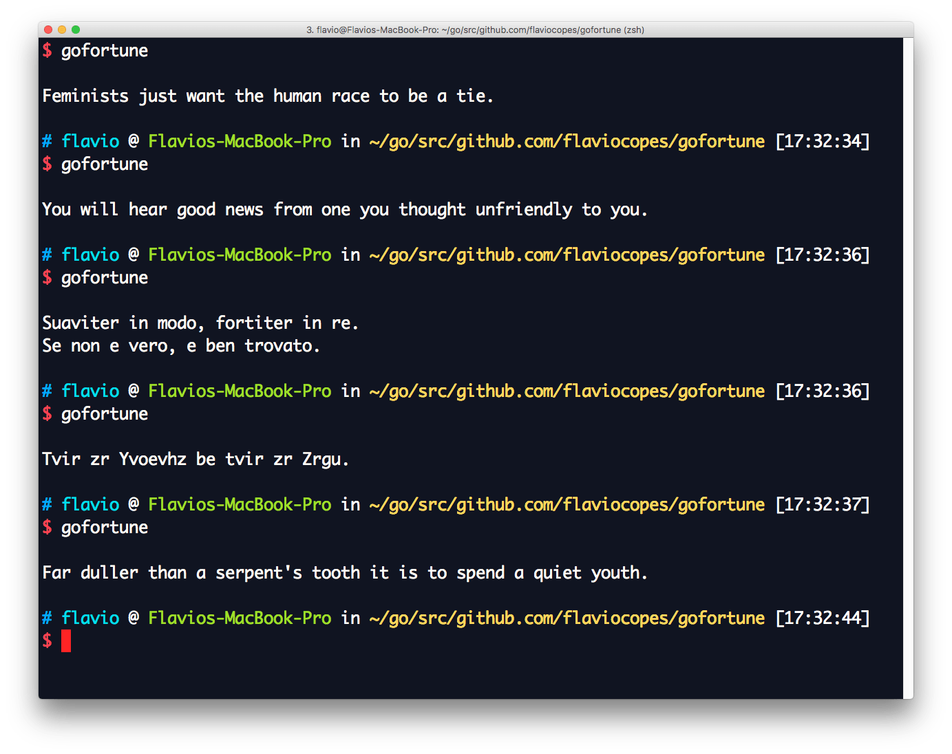 I’ve written two CLI app tutorials to build gololcat and gocowsay. In both I used fortune as the input generator.