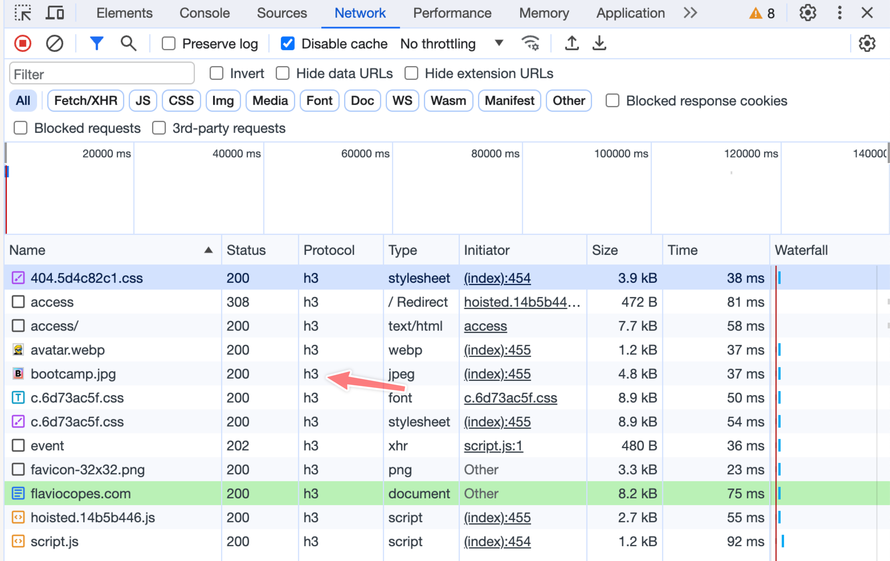 You can see the protocol version used by your website from the browser devtools, in the Network panel. h2 means HTTP/2 and h3 means HTTP/3:
