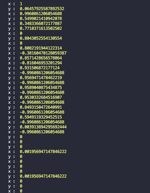 Try running the program, and you’ll see the left/right/up/down/still words being printed instead of the actual coordinates numbers: