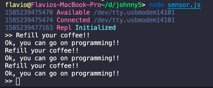 If I start running out of coffee, the program will print “Refill your coffee!!” a lot of times, because the value keeps changing while the sensor gets drier.