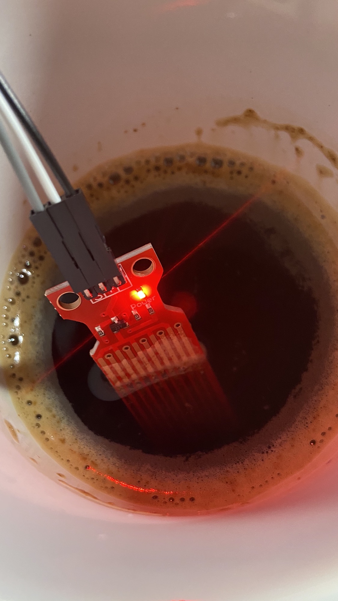 That’s it, now if I try moving the sensor in/out the cup of coffee, I get some more useful warnings: