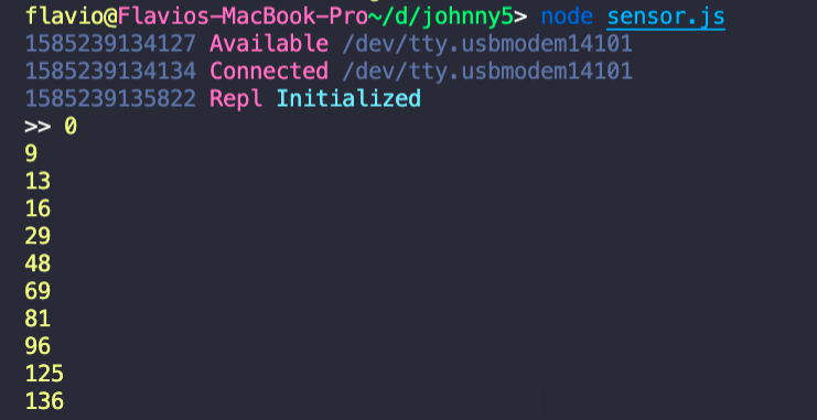 Whenever the data coming in through the sensor changes, we’ll see it being printed to the console: