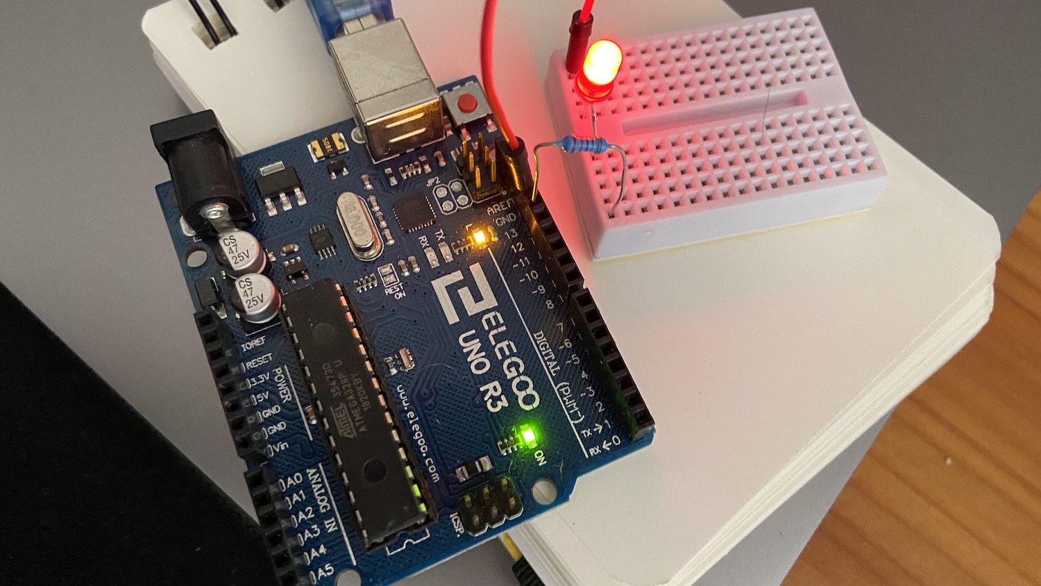 Note that I used a resistor, to limit the amount of current that flows through the LED.
