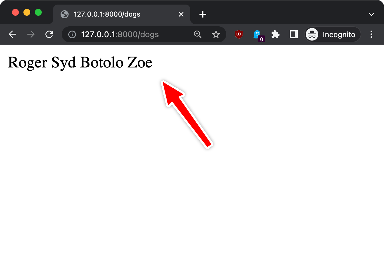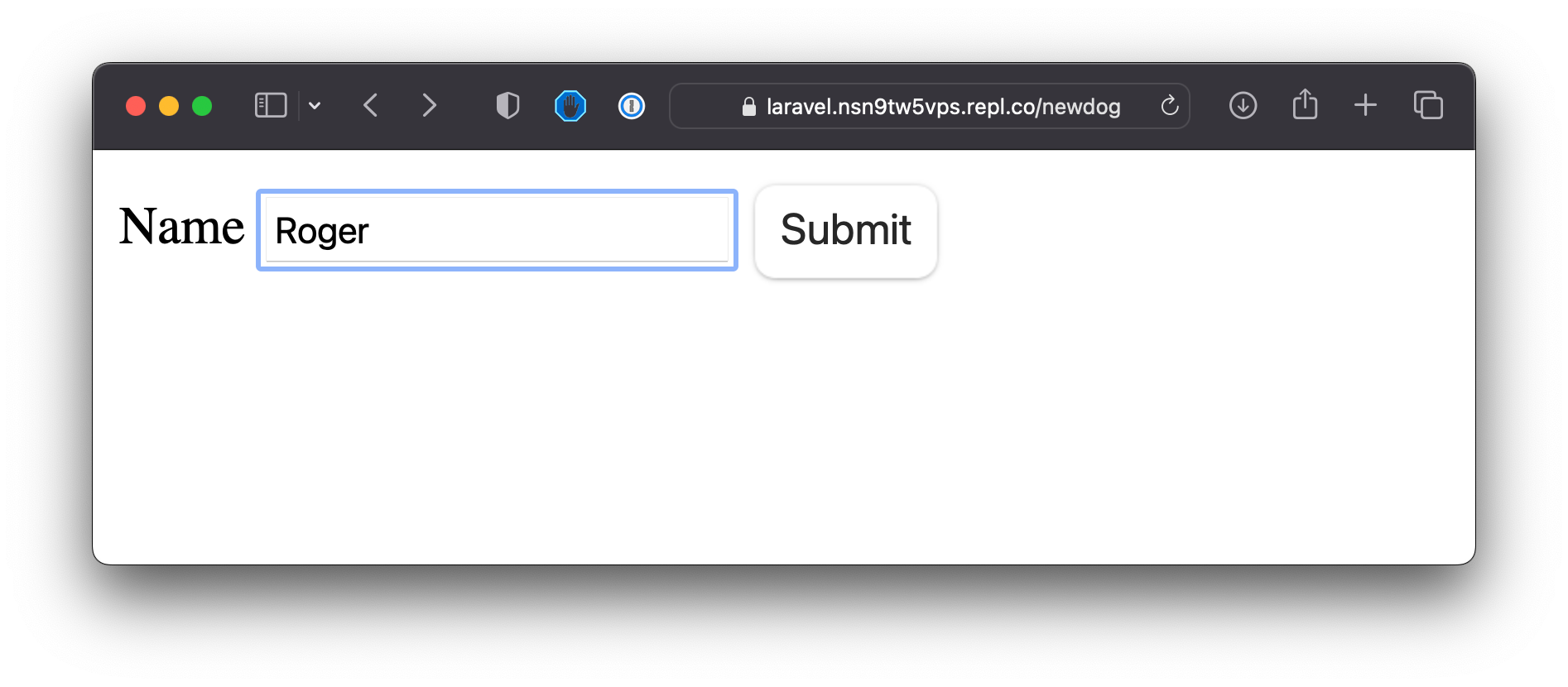 We’ll show the user a form and they can add a dog name, and click “Add” and the dog will be added to the database.