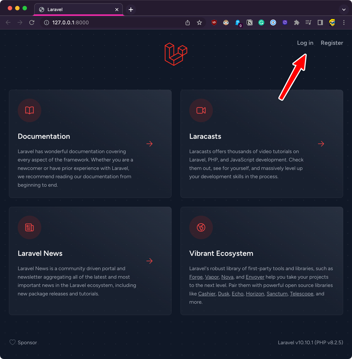 Now you can run php artisan serve and go to http://127.0.0.1:8000/.