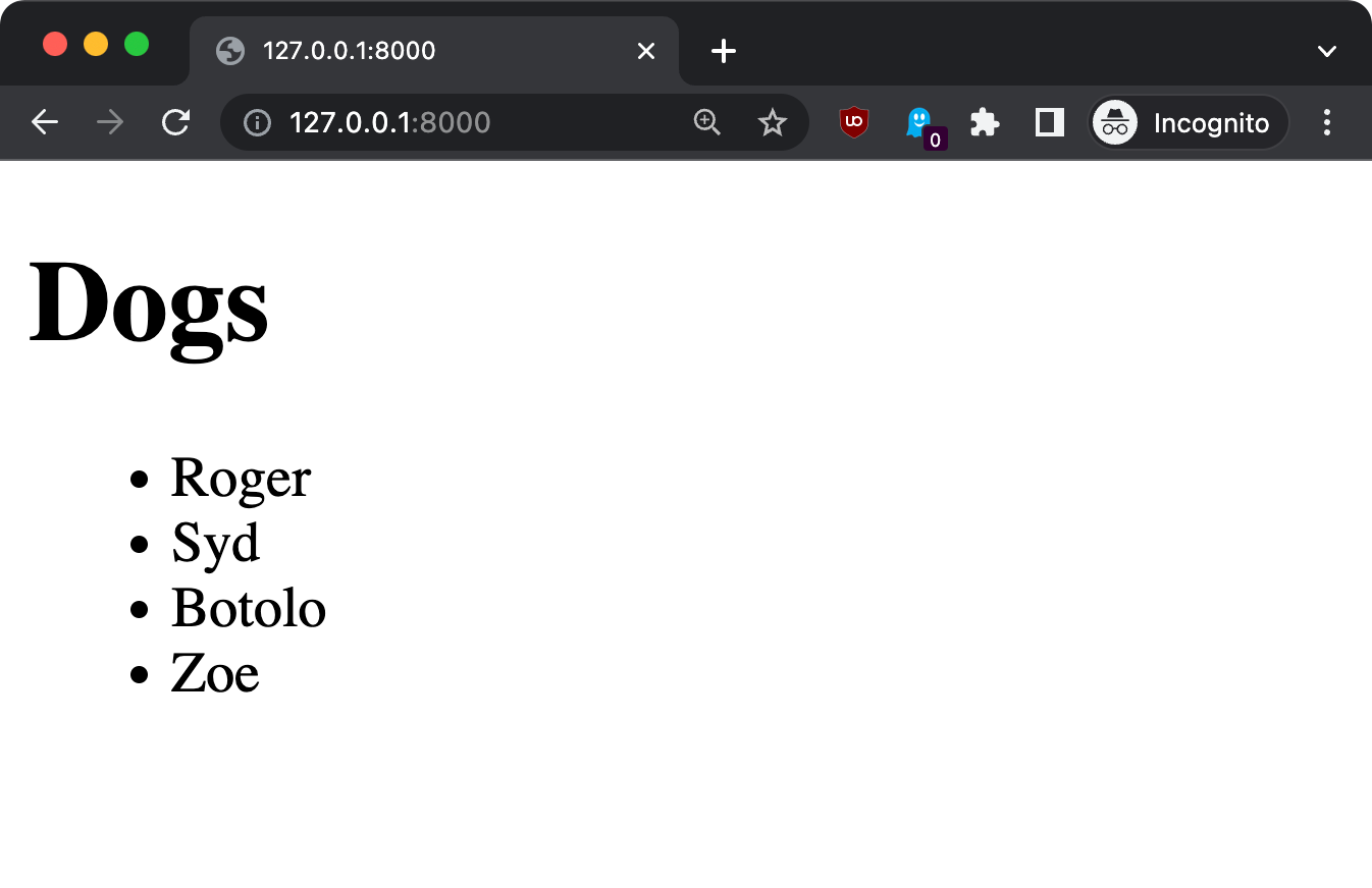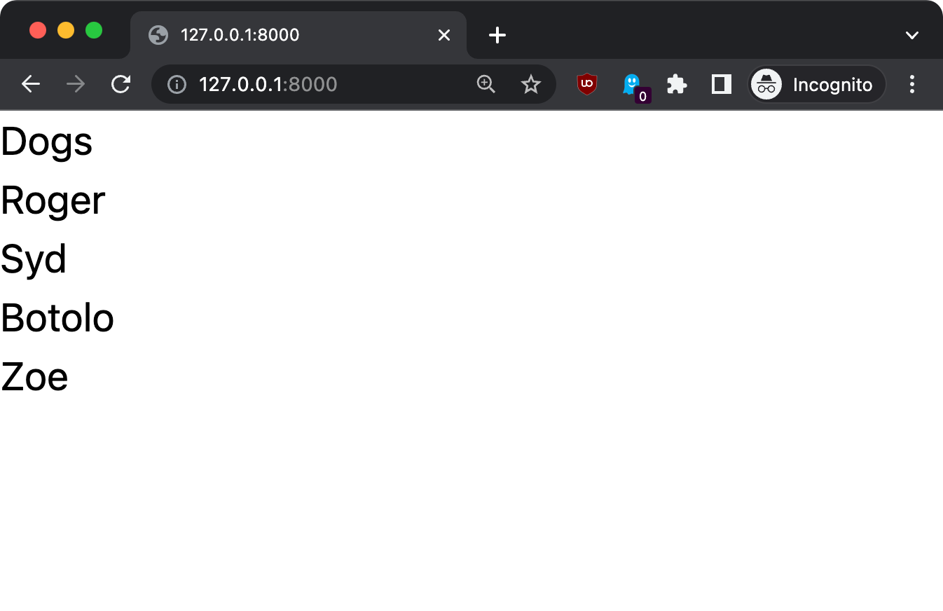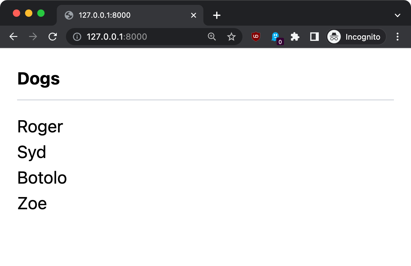 Now you should see the list of dogs on the / route:
