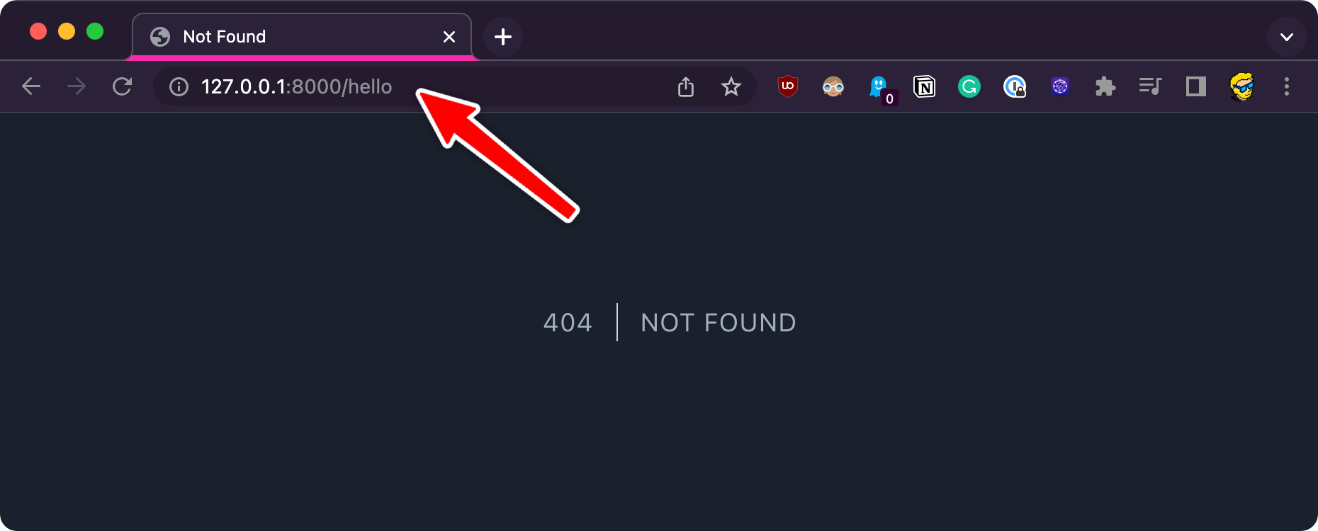 We made a request to the / relative URL (http://127.0.0.1:8000/****), which means the “home page”.