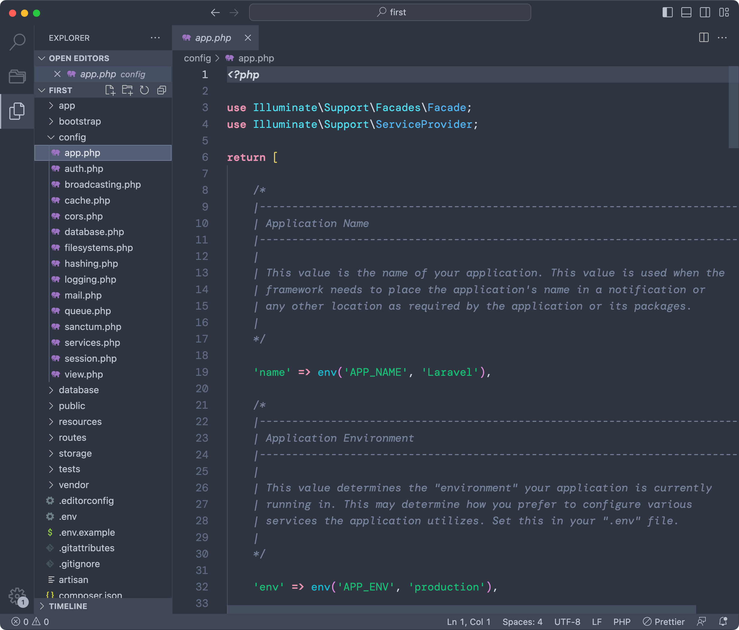 One very useful folder is config. Here’s for example the config/app.php file: