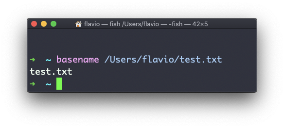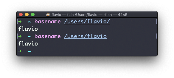 If you run basename on a path string that points to a directory, you will get the last segment of the path. In this example, /Users/flavio is a directory: