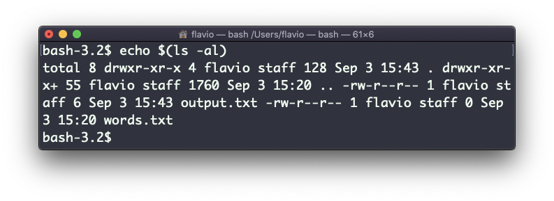 You can also execute commands, and print the result to the standard output (or to file, as you saw):