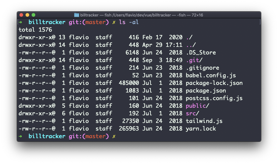 Go into a folder, and run the ls -al command.