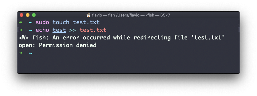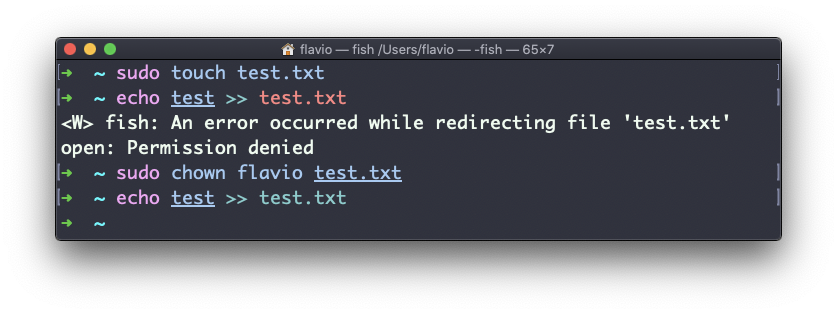 For example if you have a file that’s owned by root, you can’t write to it as another user: