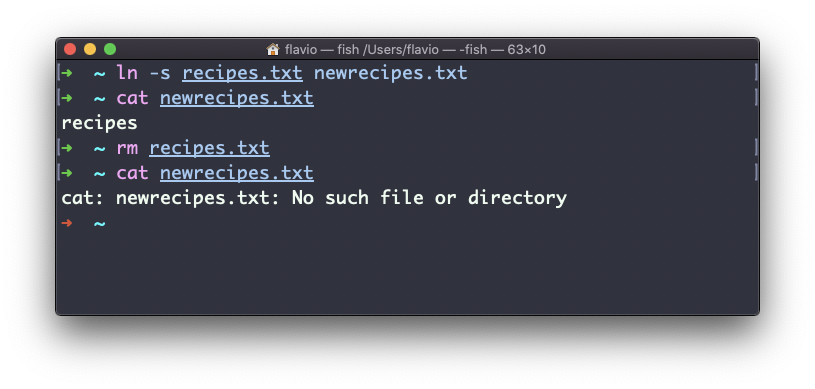 For example, say you have a file called recipes.txt. You can create a soft link to it using: