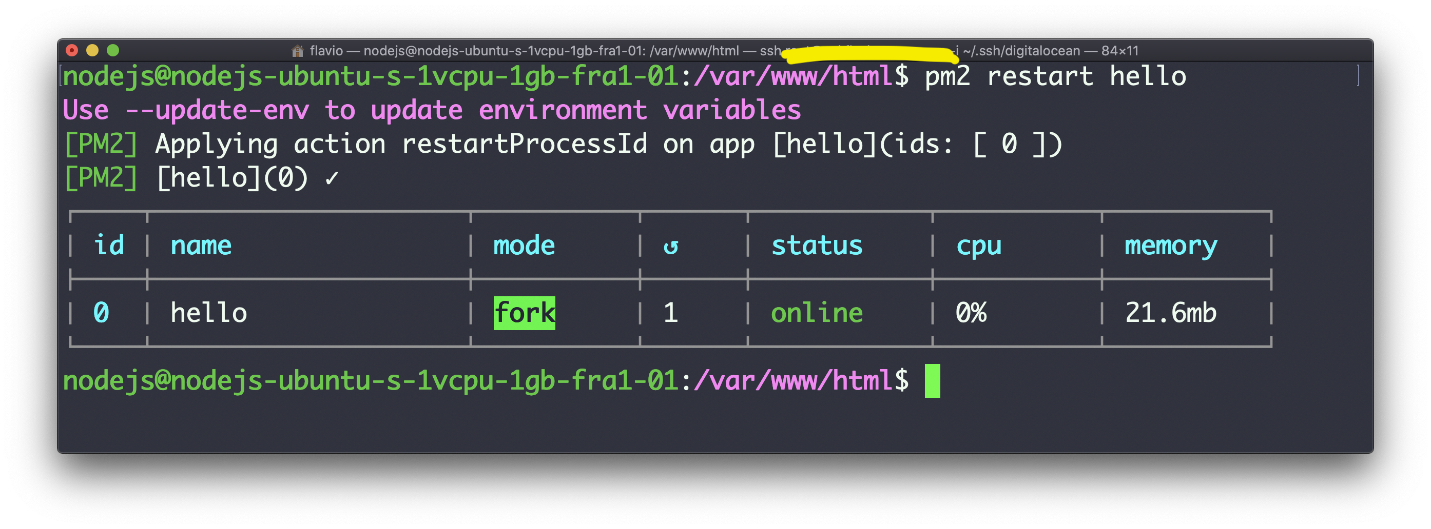 pm2 restart hello