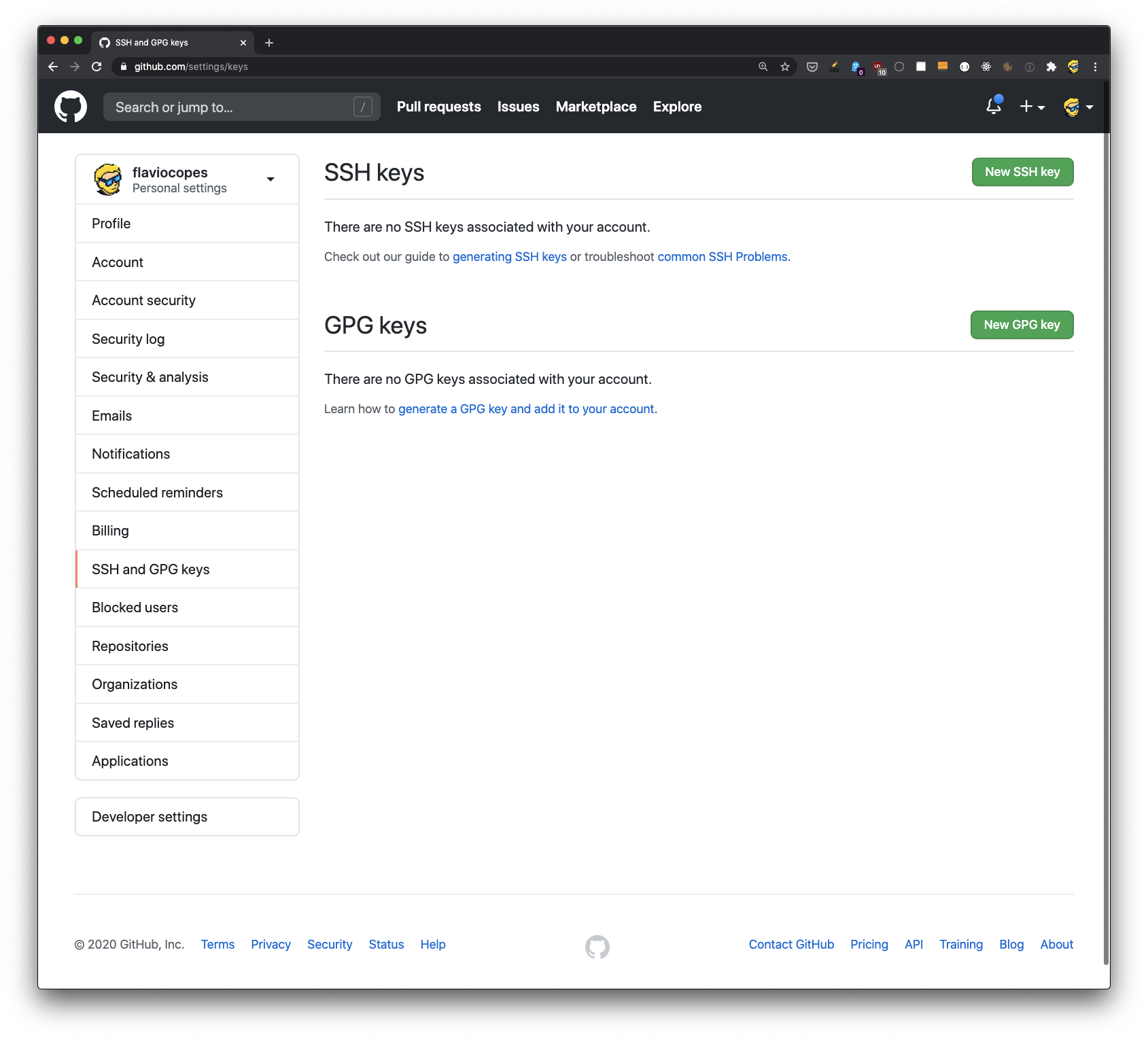 Now open the “SSH and GPG keys” panel on GitHub: