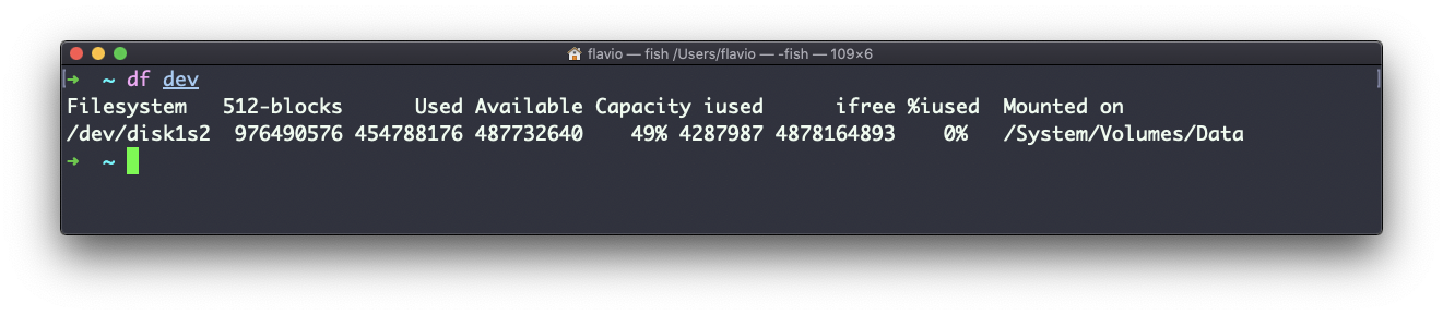 You can also specify a file or directory name to get information about the specific volume it lives on: